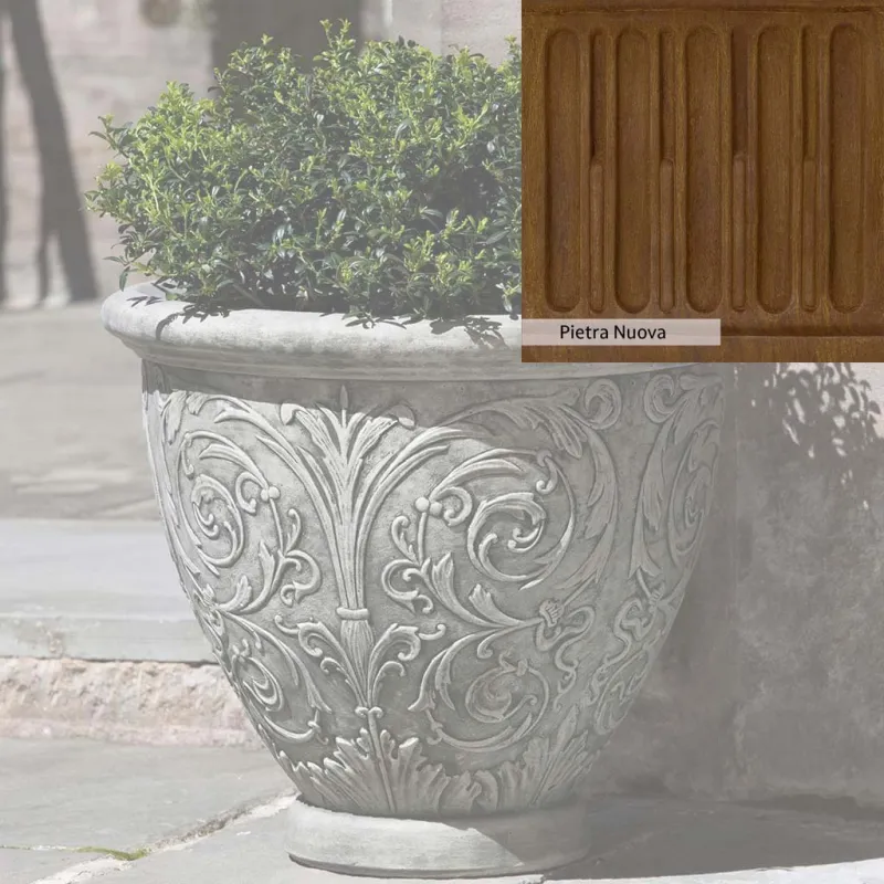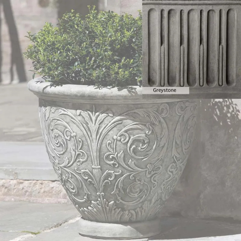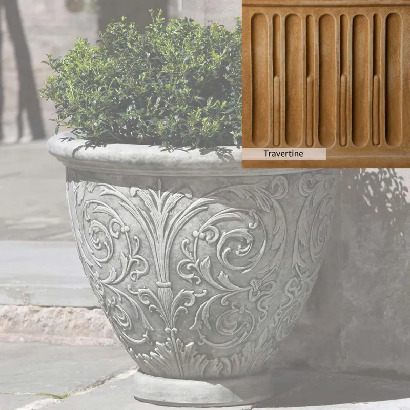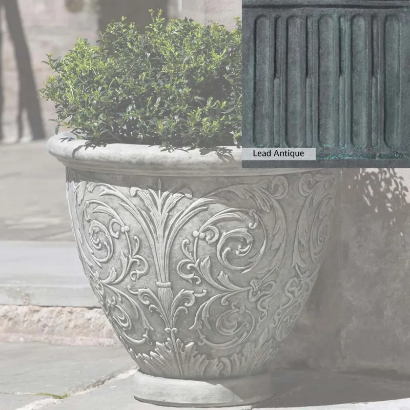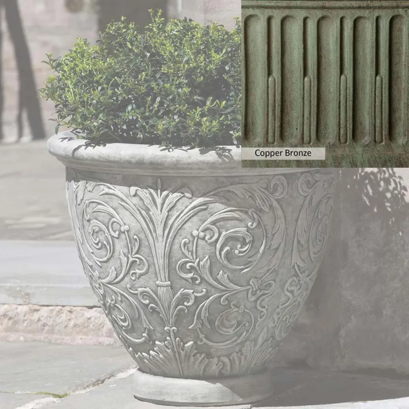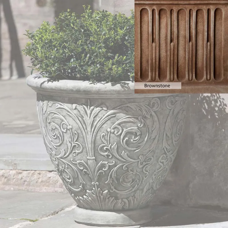 The Arabesque Small Planter by Campania International adds charm and character to any space. Planters can be placed outdoors on a patio or the home office. Planters bring the garden to you, allowing for greenery to be placed in areas that might not grow a garden, like your front door stoop or a balcony garden. Using indoors, planters offer a home to indoor plants adding life and softness to your space. The Arabesque Small Planter by Campania International is just the right piece, made of cast stone and hand-stained to order this planter offers a lifetime of enjoyment.