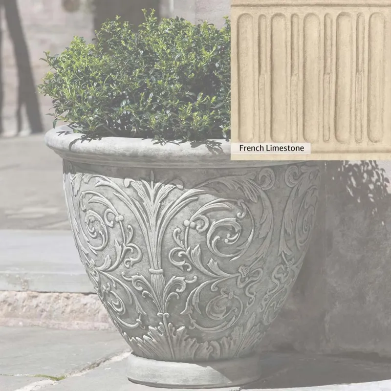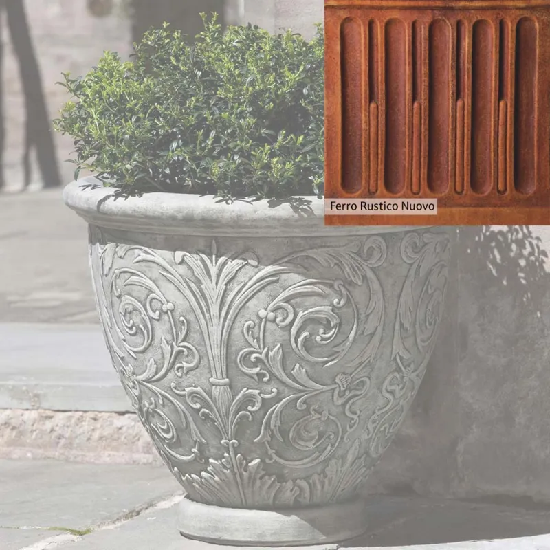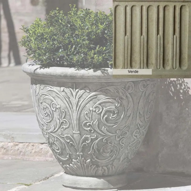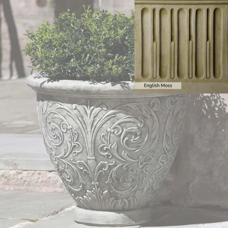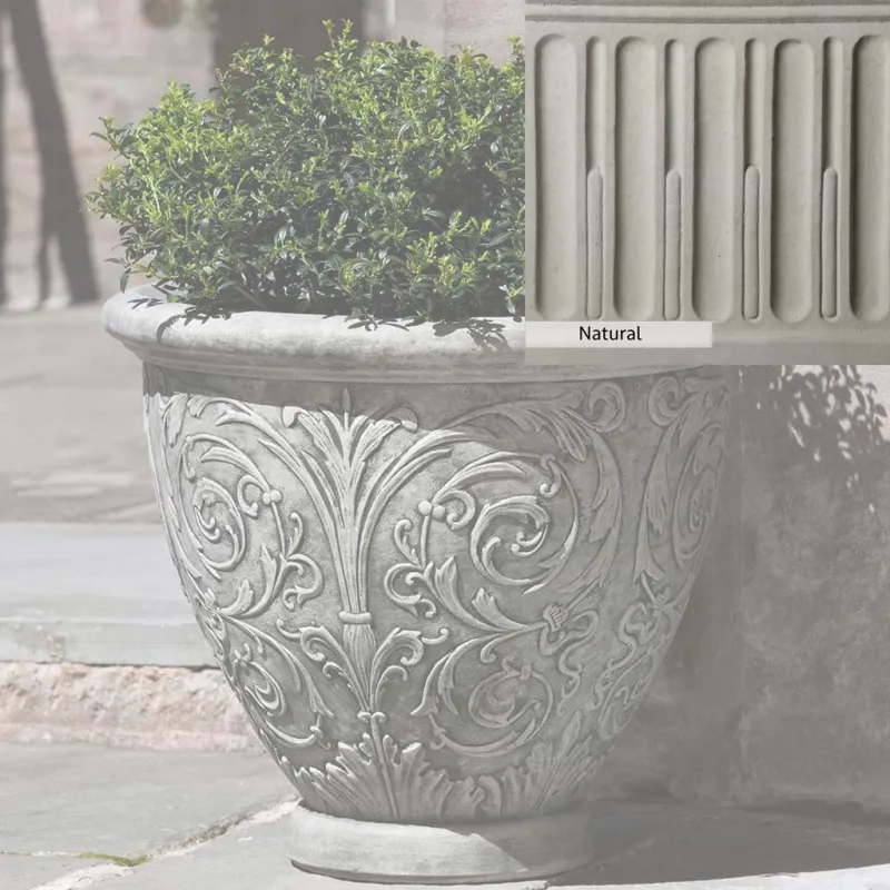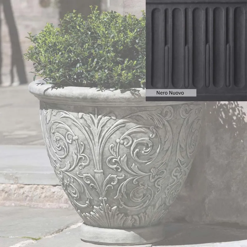 The Arabesque Small Planter by Campania International adds charm and character to any space. Planters can be placed outdoors on a patio or the home office. Planters bring the garden to you, allowing for greenery to be placed in areas that might not grow a garden, like your front door stoop or a balcony garden. Using indoors, planters offer a home to indoor plants adding life and softness to your space. The Arabesque Small Planter by Campania International is just the right piece, made of cast stone and hand-stained to order this planter offers a lifetime of enjoyment.