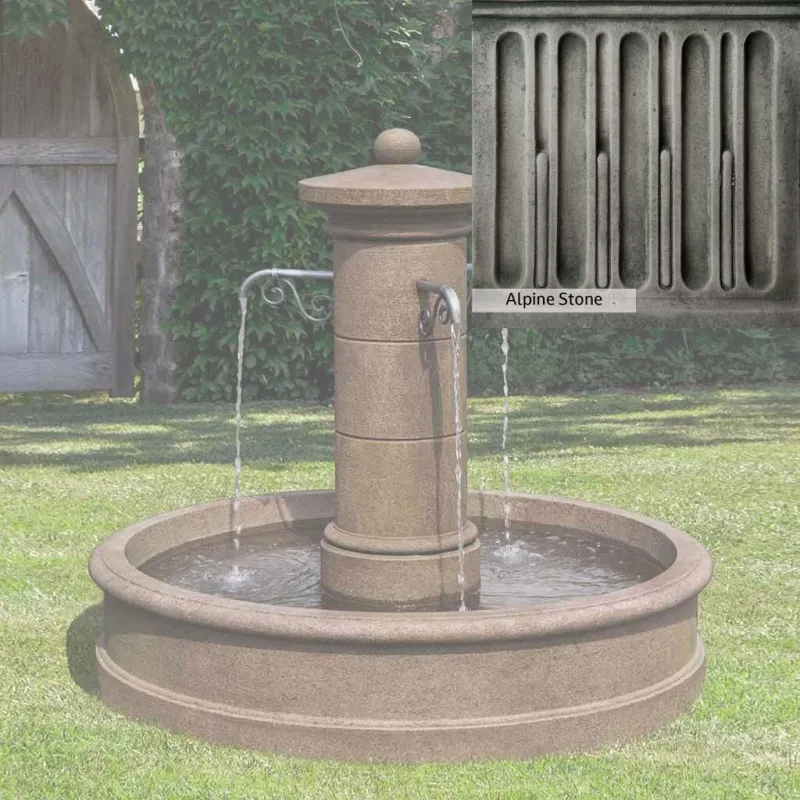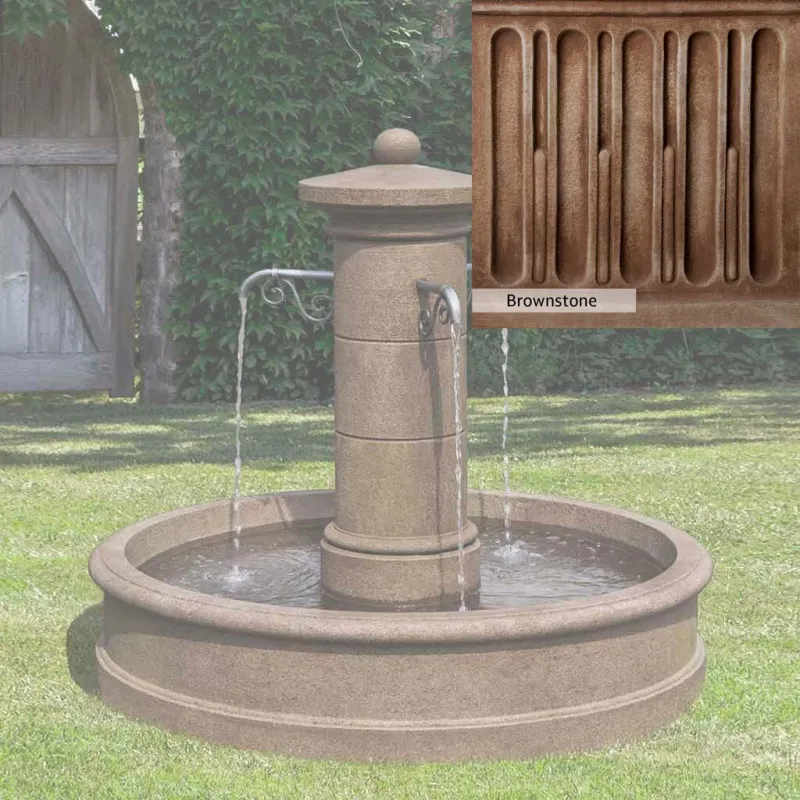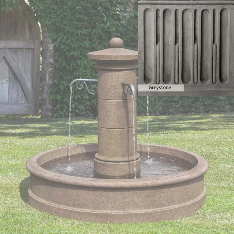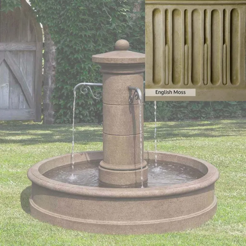 The Avignon Fountain is handcrafted by skilled artisans in the USA. With their extensive experience, the Campania team applies a unique patina to ensure that each piece is special. This fountain is shown in the Aged Limestone color. Campania International’s proprietary cast stone blend is meticulously molded to create each piece used in the construction of this fountain. Due to the use of different materials and manufacturing processes, as well as varying photography conditions, natural variations in size, weight, and color can occur. The actual color may differ from the photo.