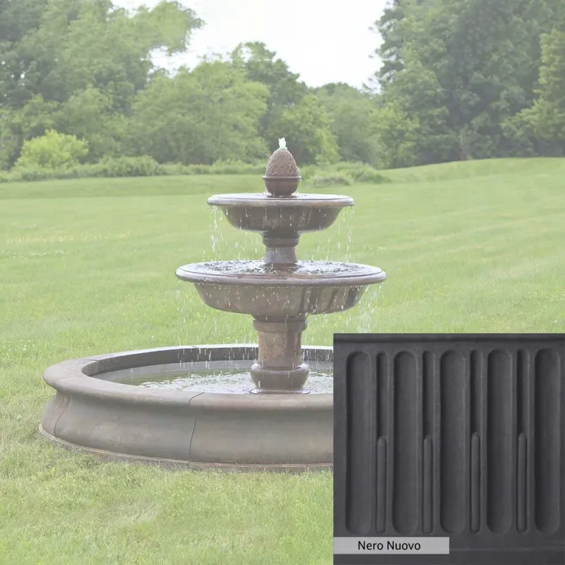 Skilled artisans in the USA handcraft the Beaufort Fountain. With their extensive experience, the Campania team applies the unique patina, ensuring each piece is extraordinary. This fountain is shone in the Pietra Nuovacolor. Campania International’s proprietary cast stone blend is meticulously molded to create each piece used in the construction of this fountain. Due to the use of different materials and manufacturing processes, as well as varying photography conditions, natural variations in size, weight, and color can occur. The actual color may differ from the photo.