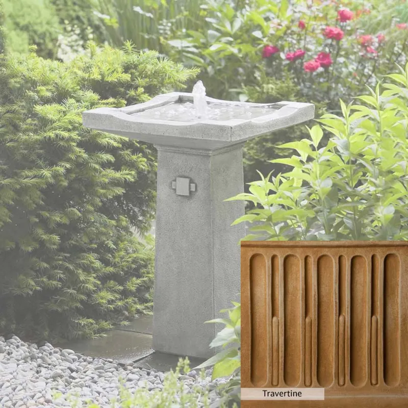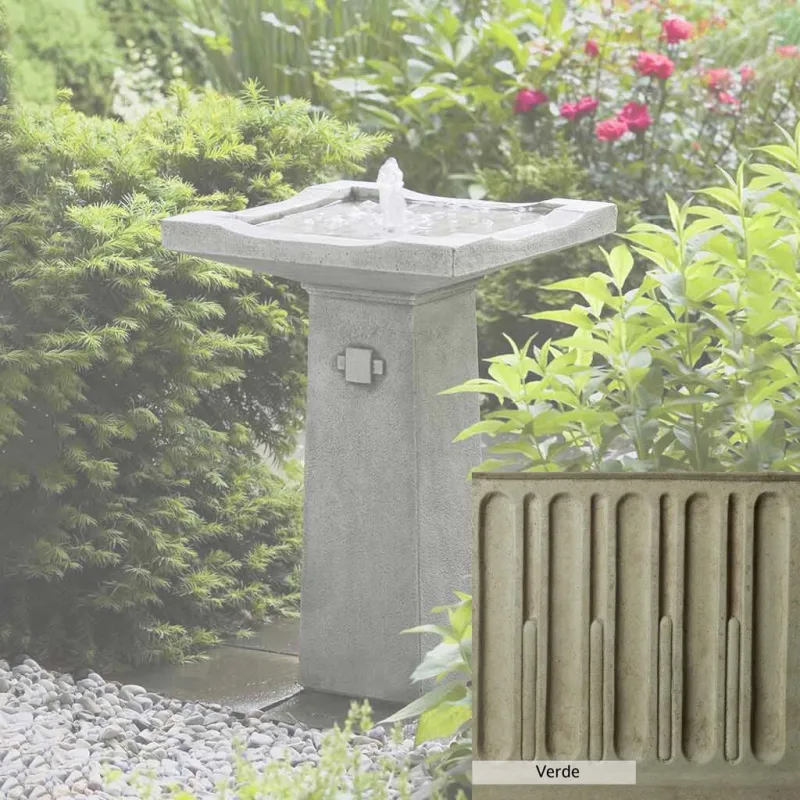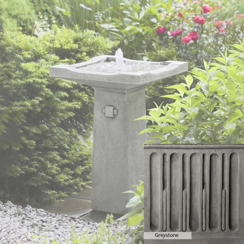 The Bjorn Fountain is handcrafted by skilled artisans in the USA. The Campania team applies a unique patina with experienced hands, making each piece special. This fountain is featured in the Alpine Stone color. Campania International’s exclusive cast stone blend is expertly molded to create each piece in the construction of this fountain. Due to the materials used and manufacturing processes, as well as variations in photography conditions, natural differences may occur in size, weight, and color. The actual color may vary from the photo.