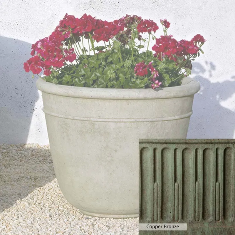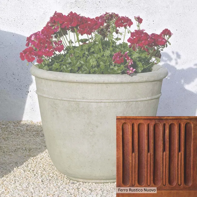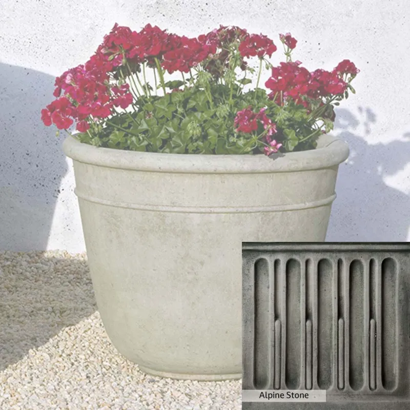 The Carema Medium Planter by Campania International adds charm and character to any space. Planters can be placed outdoors on a patio or in the home office. Planters bring the garden to you, allowing for greenery to be placed in areas that might not grow a garden, like your front door stoop or a balcony garden. Using indoors, planters offer a home to indoor plants adding life and softness to your space. The Carema Medium Planter by Campania International is just the right piece, made of cast stone and hand-stained to order this planter offers a lifetime of enjoyment.