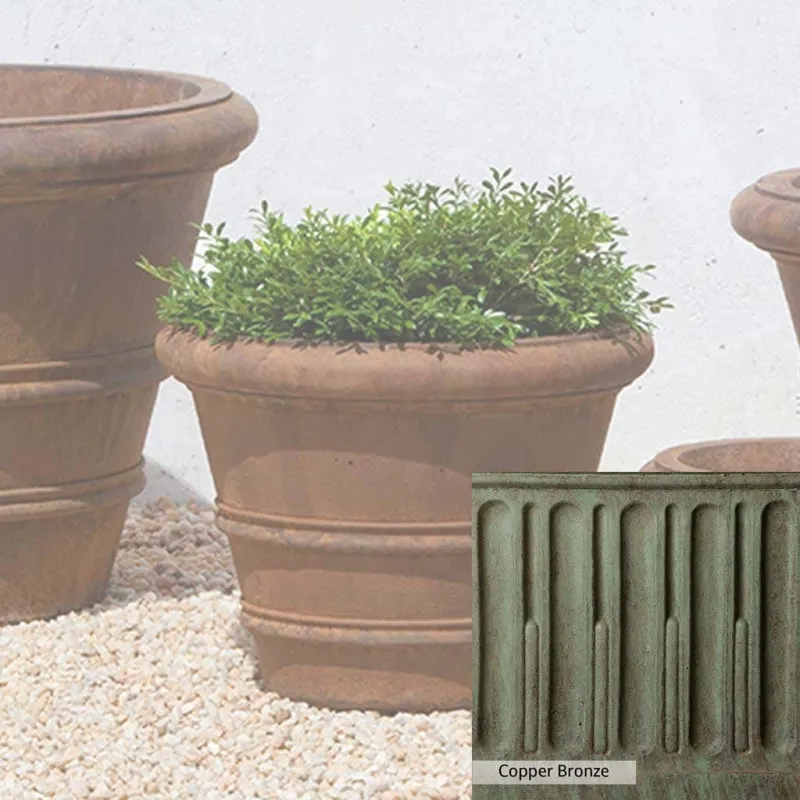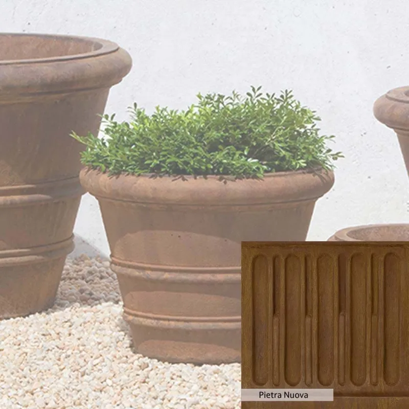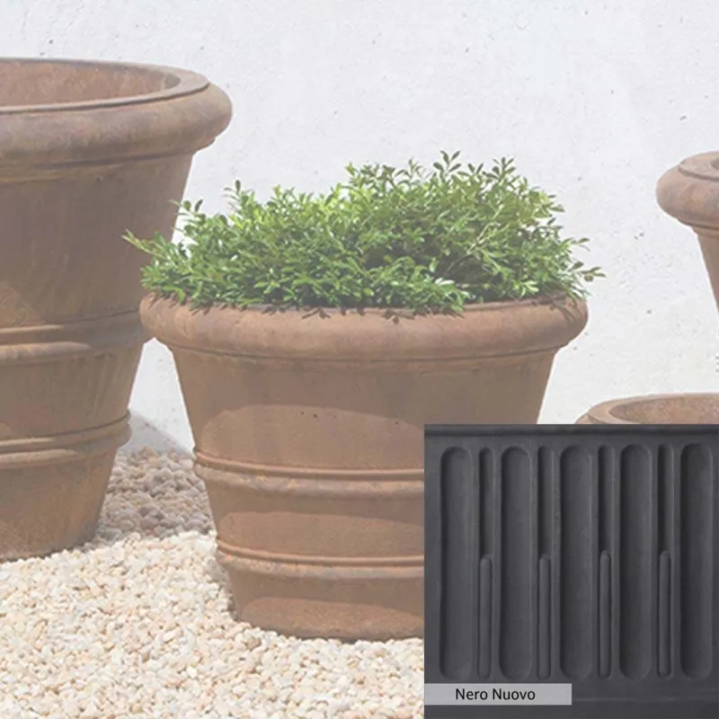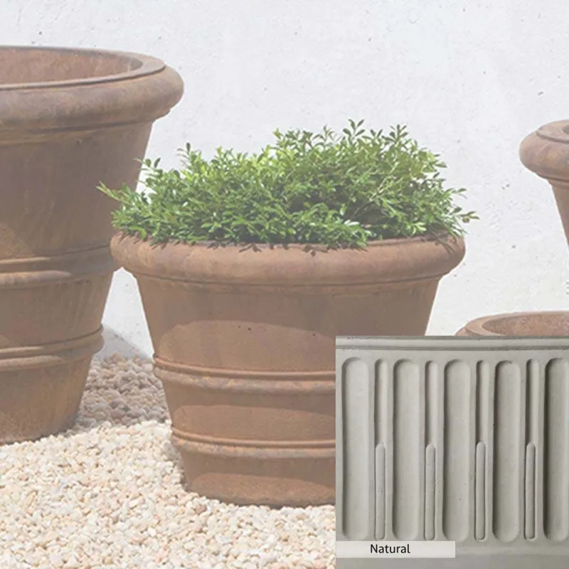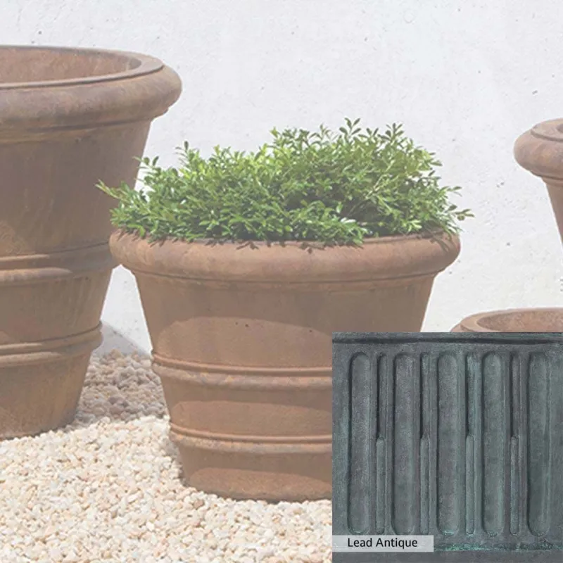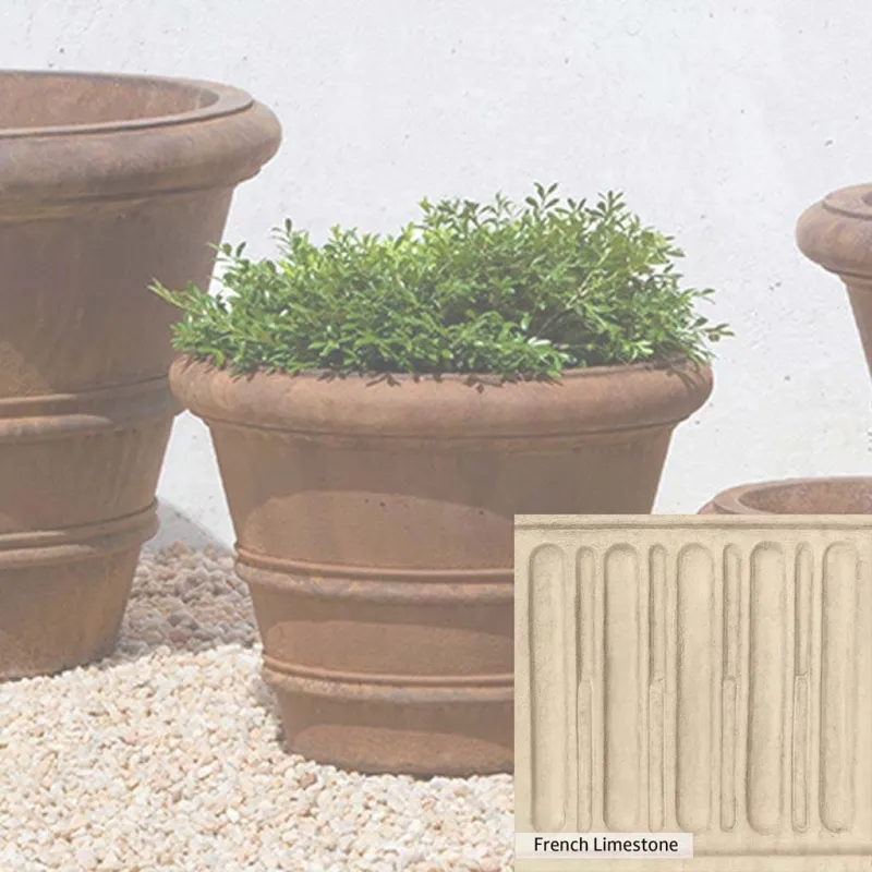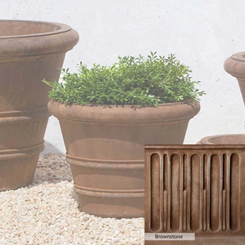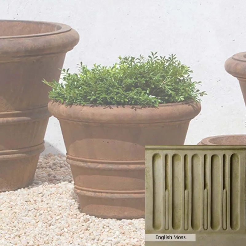 The Campania International Classic Rolled Rim 14.75-inch Planter injects character into any interior or exterior setting. Place it outdoors on a patio or in your home office for a touch of greenery that may not otherwise be possible. These planters provide a suitable home for indoor plants, adding a touch of life and softness to the area. This planter will last years of enjoyment, hand-crafted from cast stone and hand-stained upon order.