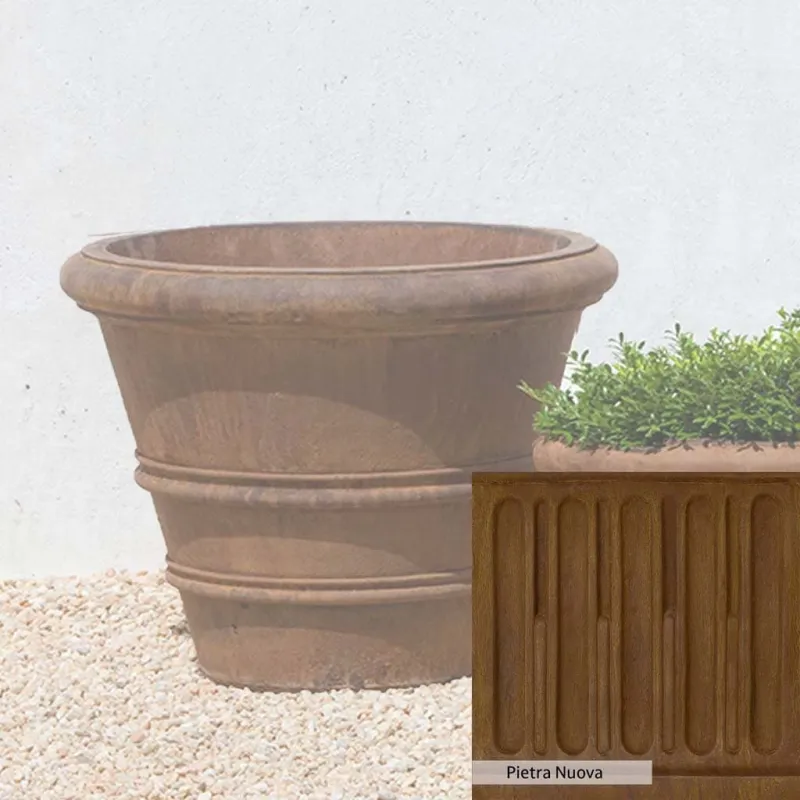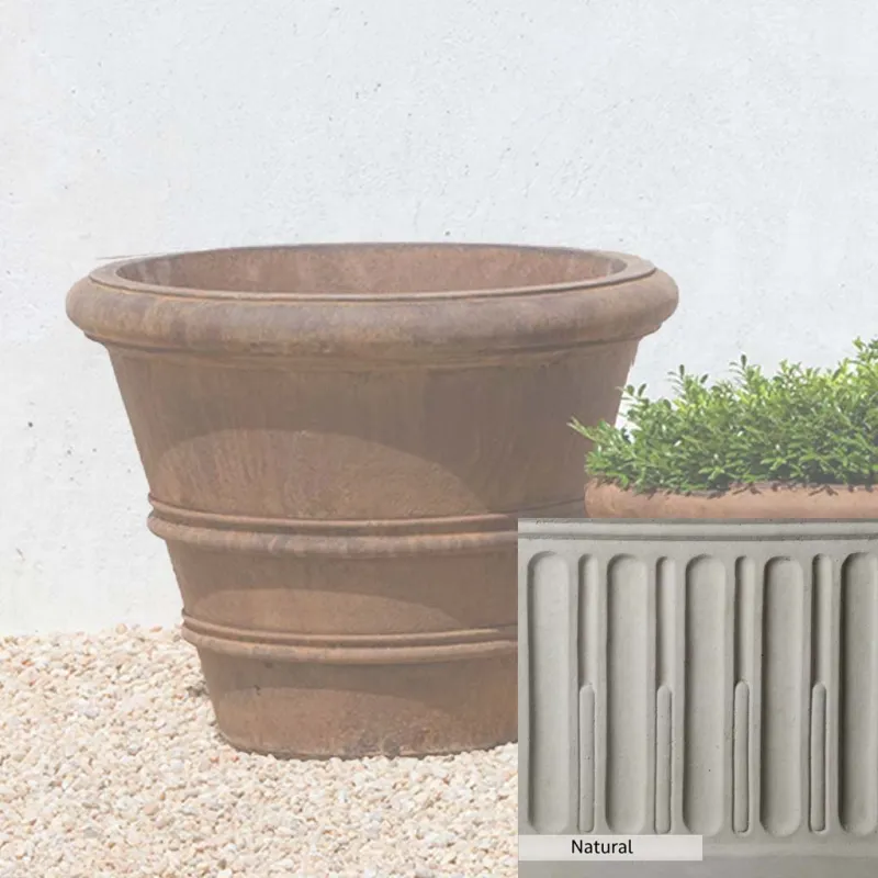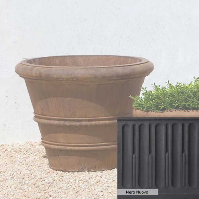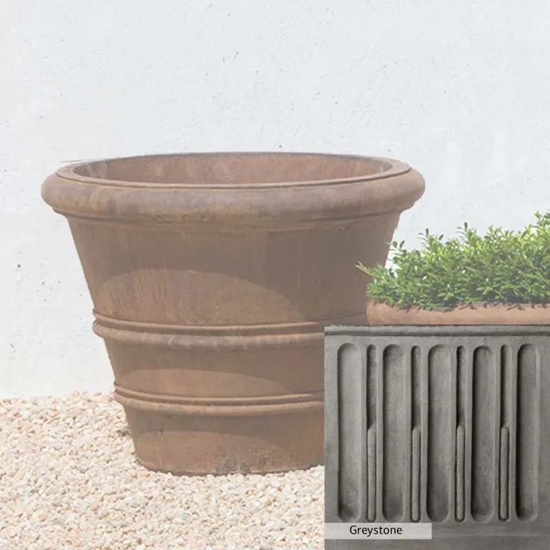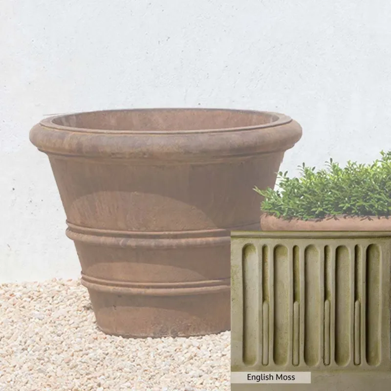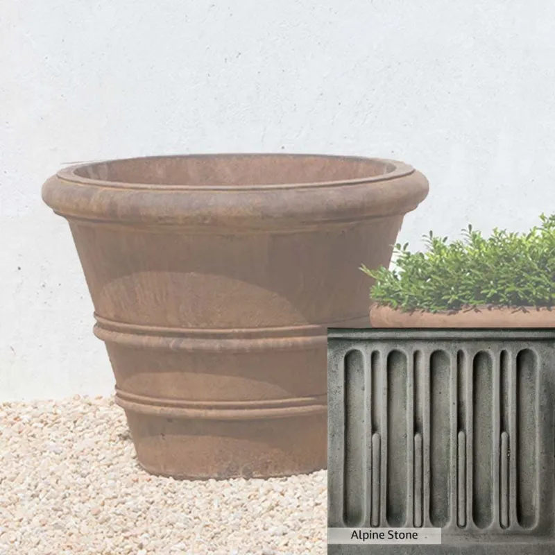 Campania International’s Classic Rolled Rim 20.75-inch Planter adds a classic touch to any setting. This planter can be used indoors and outdoors, on a patio, or at the doorstep. It is ideal for greening up small areas, like a balcony garden, where plants may need more space to grow into a full garden. Crafted from cast stone and hand-stained, the planter ensures a lifetime of use.