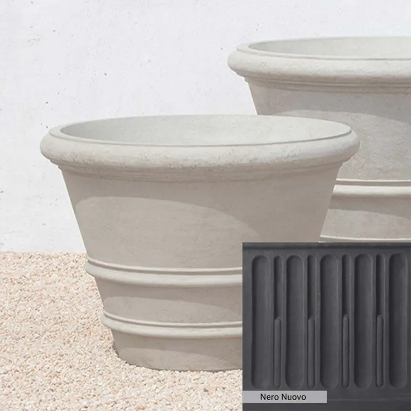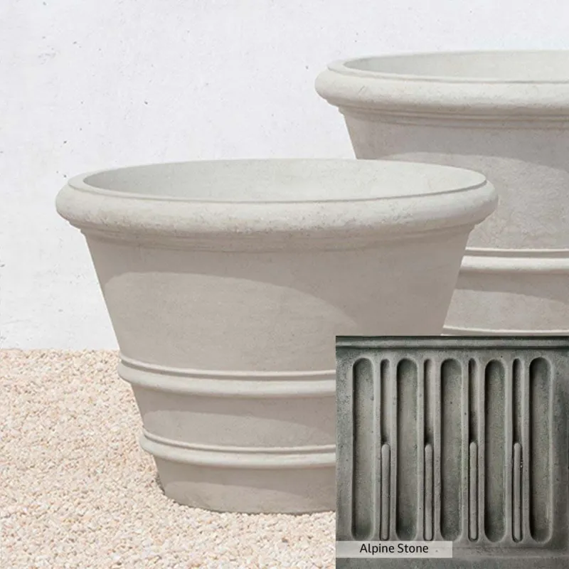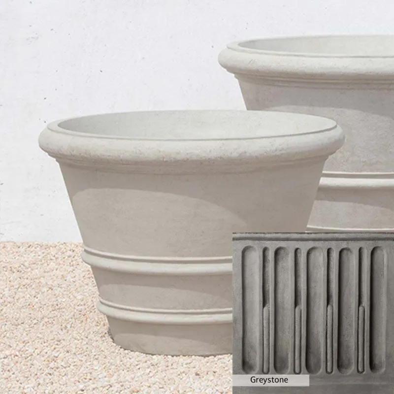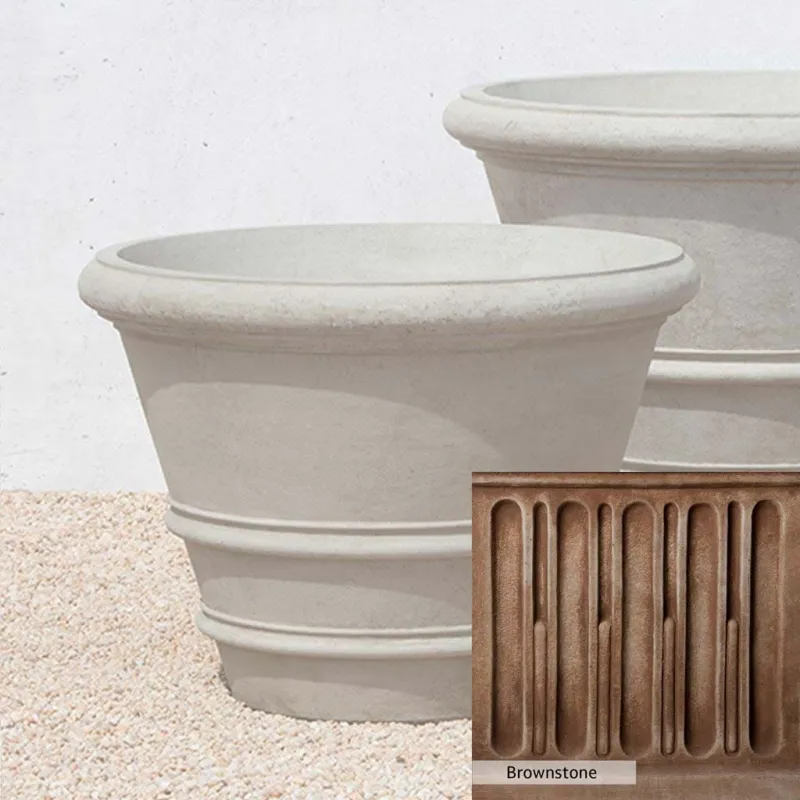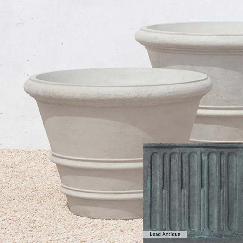The Classic Rolled Rim 31.5 inch by Campania International adds charm and character to any space. Planters can be placed outdoors on a patio or in the home office. Planters bring the garden to you, allowing for greenery to be placed in areas that might not grow a garden, like your front door stoop or a balcony garden. Using indoors, planters offer a home to indoor plants adding life and softness to your space. The Classic Rolled Rim 31.5 inch by Campania International is just the right piece; made of cast stone and hand-stained to order, this planter offers a lifetime of enjoyment.