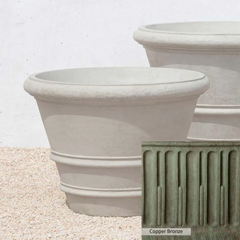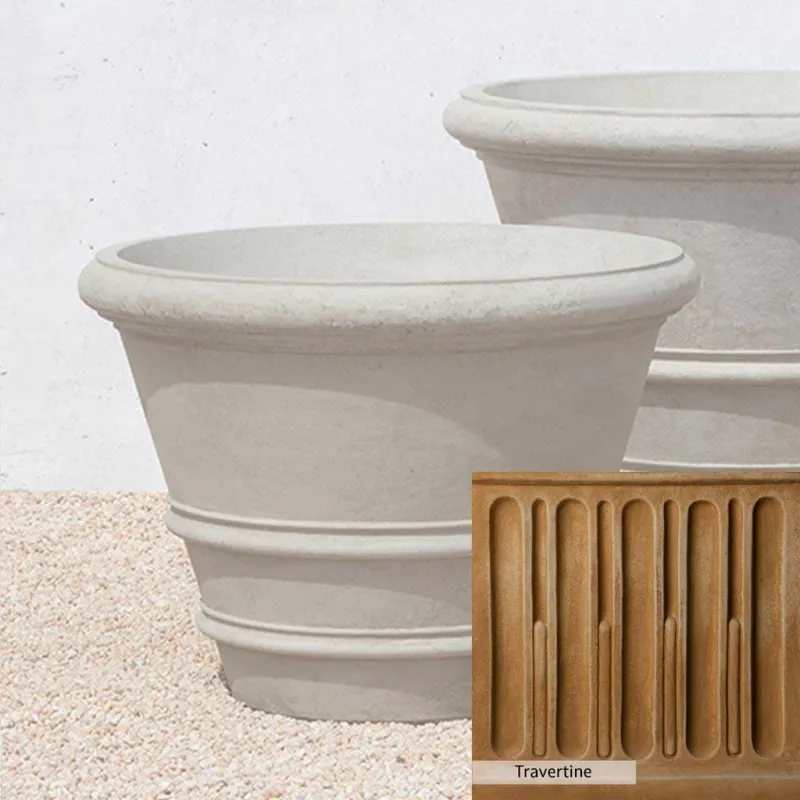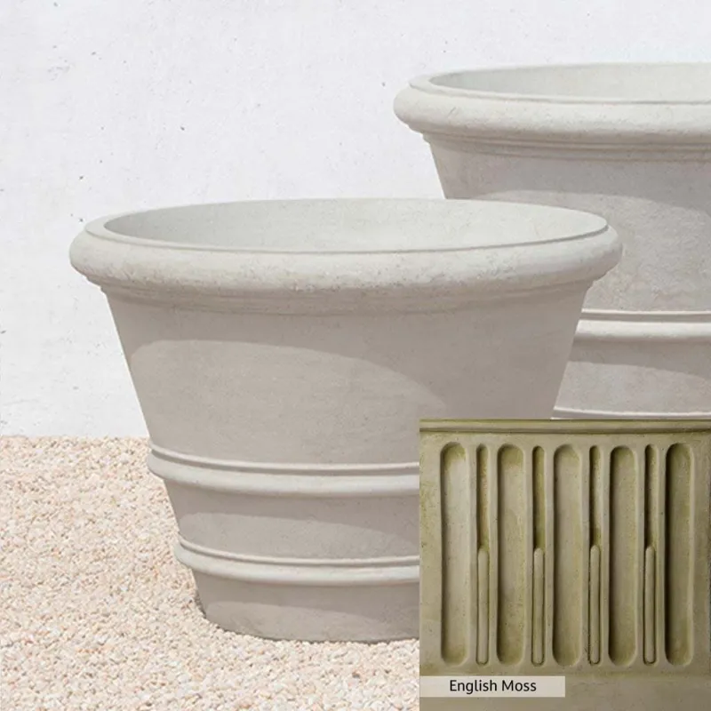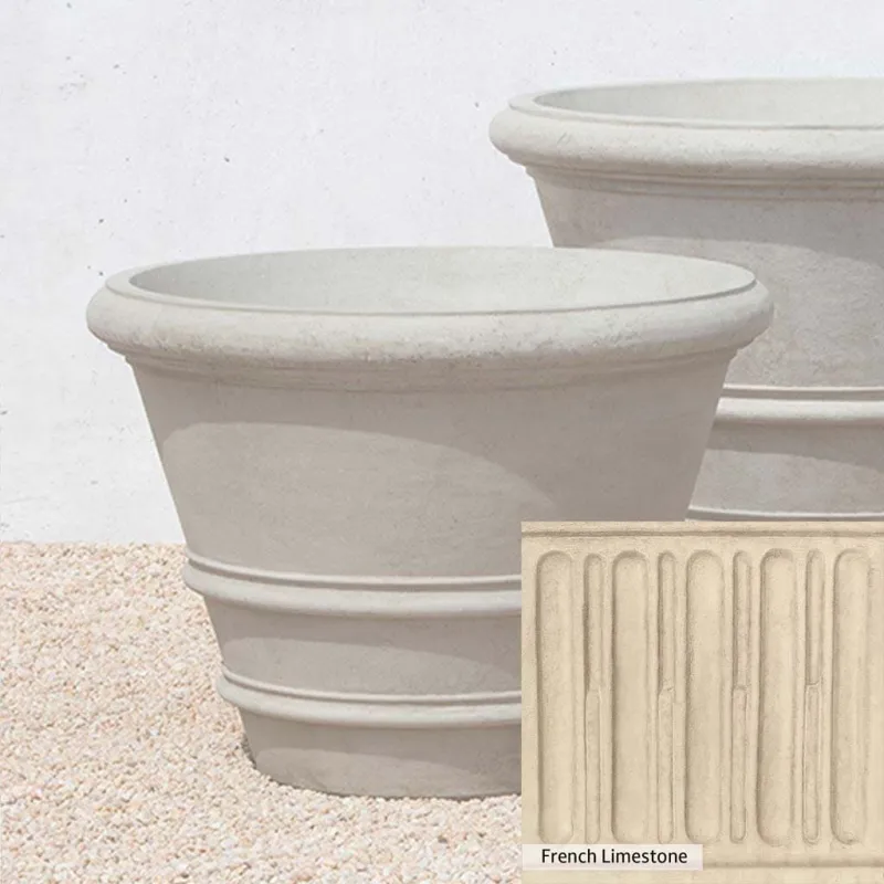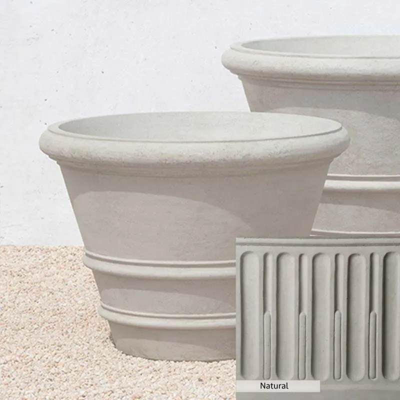 The Classic Rolled Rim 31.5 inch by Campania International adds charm and character to any space. Planters can be placed outdoors on a patio or in the home office. Planters bring the garden to you, allowing for greenery to be placed in areas that might not grow a garden, like your front door stoop or a balcony garden. Using indoors, planters offer a home to indoor plants adding life and softness to your space. The Classic Rolled Rim 31.5 inch by Campania International is just the right piece; made of cast stone and hand-stained to order, this planter offers a lifetime of enjoyment.