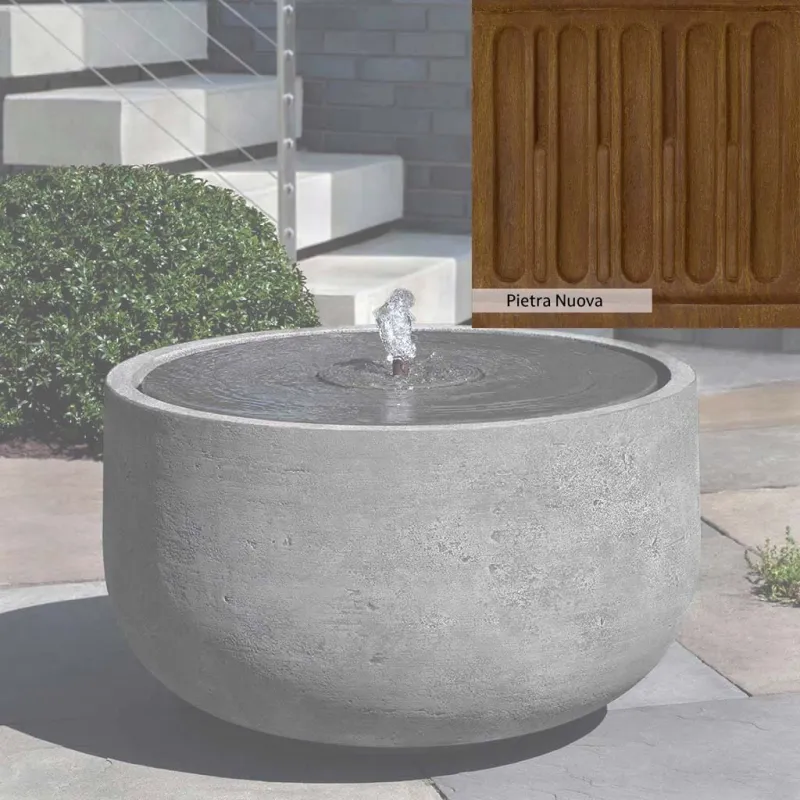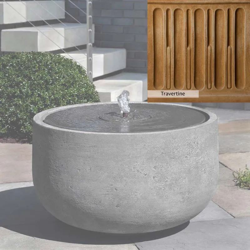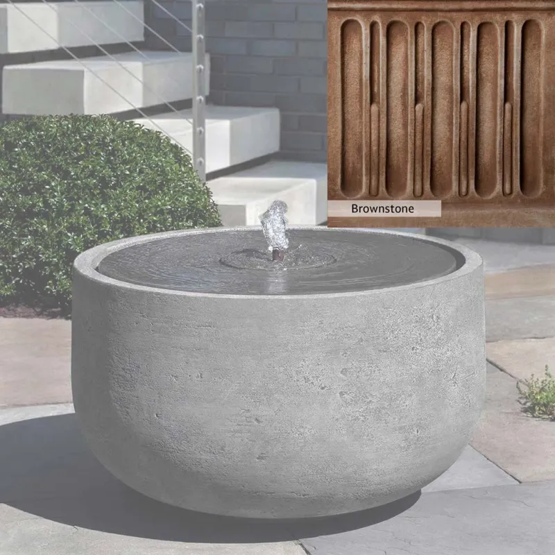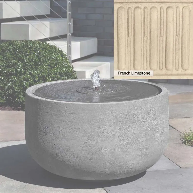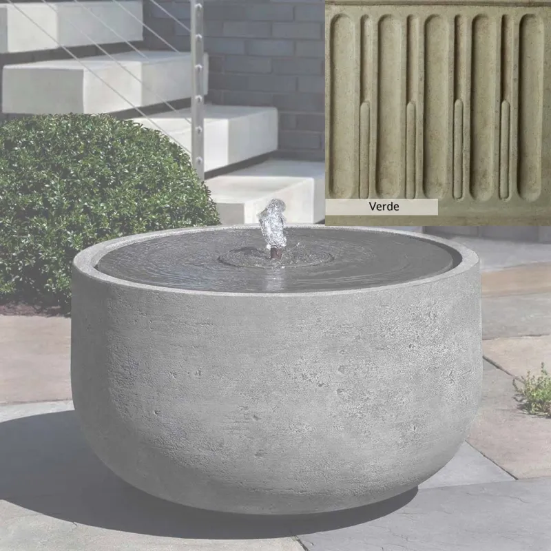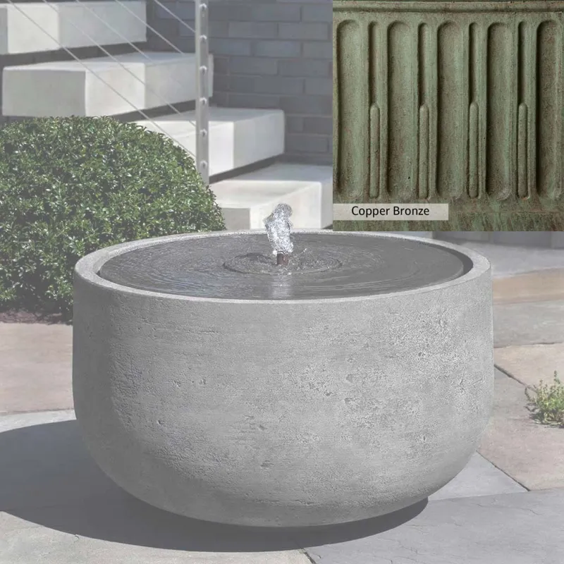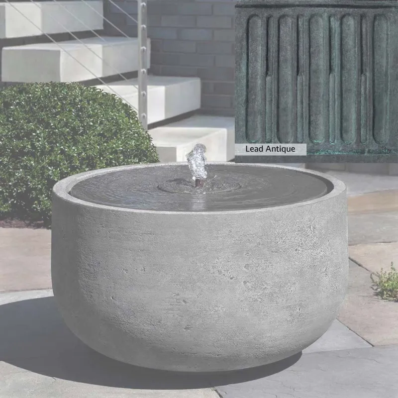 Skilled artisans in the USA handcraft the Echo Park Fountain. The Campania team applies the unique patina using their experience, making each piece one-of-a-kind. This fountain is shown in the Alpine Stone color. Campania International’s unique cast stone blend is meticulously molded to create each piece used in the construction of this fountain. Due to the materials, manufacturing processes, and variations in photography conditions, natural differences can occur in size, weight, and color. The actual color may vary from the photo.