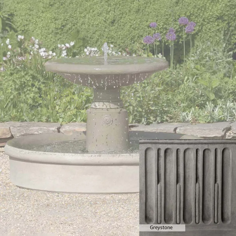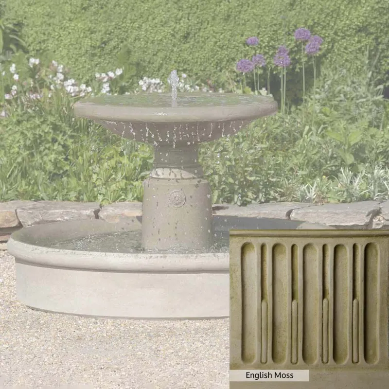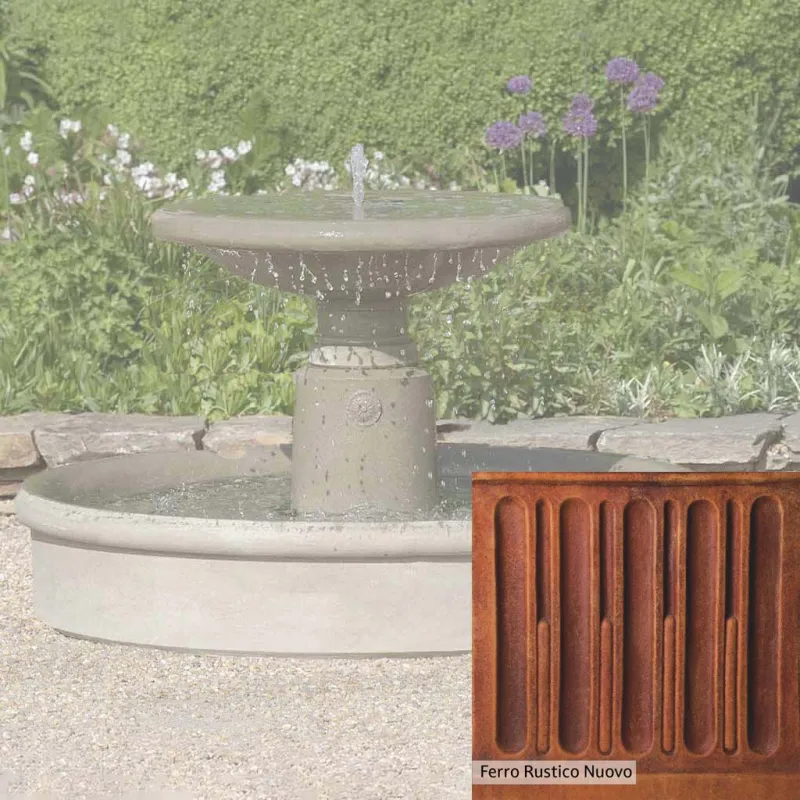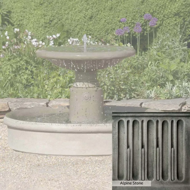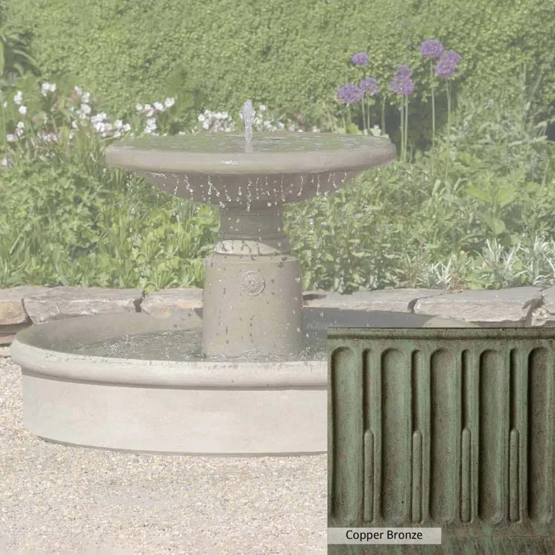 Skilled artisans in the USA handcraft the Esplanade Fountain. The Campania team applies a unique patina, making each piece one-of-a-kind. This fountain is shown in the Verde color. Due to materials, manufacturing processes, and variations in photography conditions, natural differences can occur in size, weight, and color. The actual color may vary from the photo.