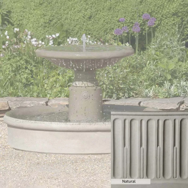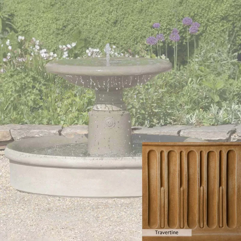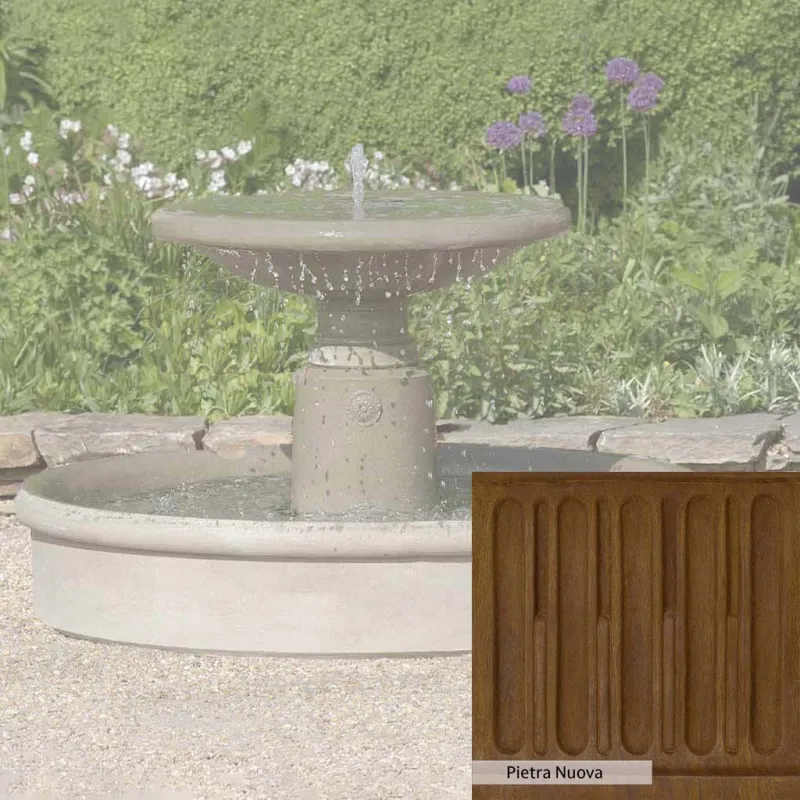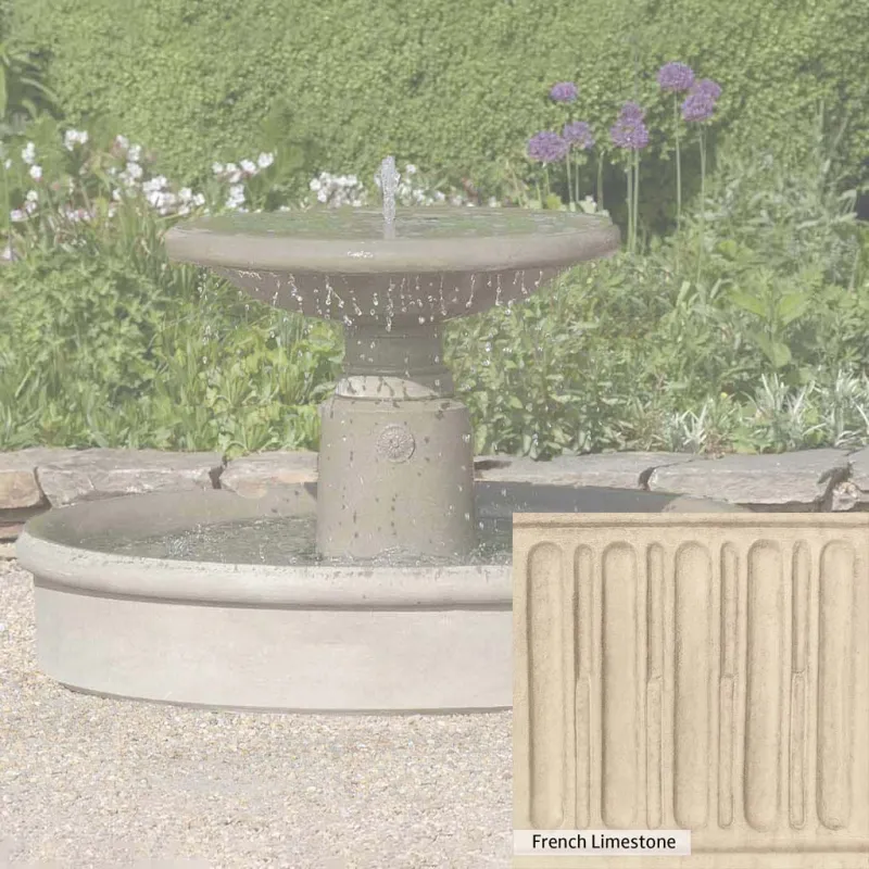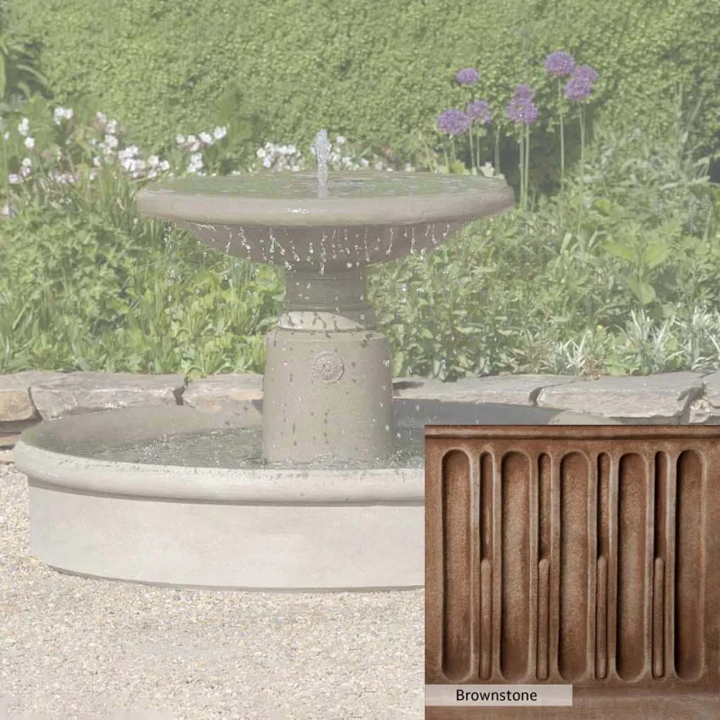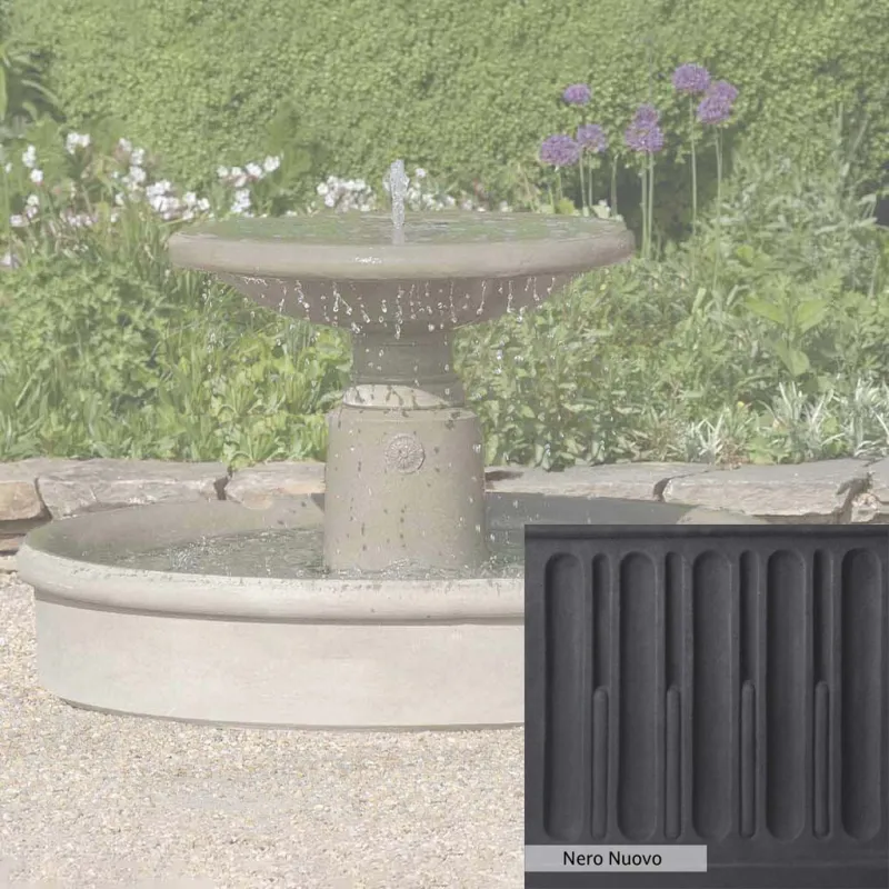 Skilled artisans in the USA handcraft the Esplanade Fountain. The Campania team applies a unique patina, making each piece one-of-a-kind. This fountain is shown in the Verde color. Due to materials, manufacturing processes, and variations in photography conditions, natural differences can occur in size, weight, and color. The actual color may vary from the photo.