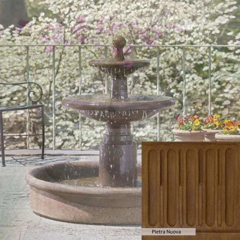 SKU: N/A Category: Campania International Tags: 2 Tiered Fountain, Basin Fountain, Cast Stone Fountain, Ferro Rustico Nuovo, FTNCOV-MED, In Stock, Large Fountain, LTL Ship, Multi-Light, Refill #10, Tiered Fountain