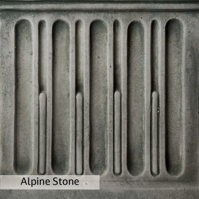 Greystone , Aged Limestone , Alpine Stone , Brownstone , Copper Bronze , English Lead , English Moss , Ferro Rustico Nuovo , French Limestone , Lead Antique , Natural , Nero Nuovo , Pietra Nuova , Terra Cotta , Travertine , Verde