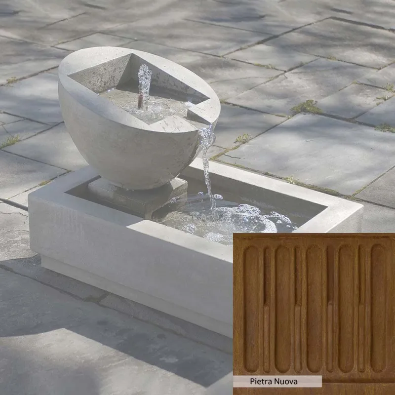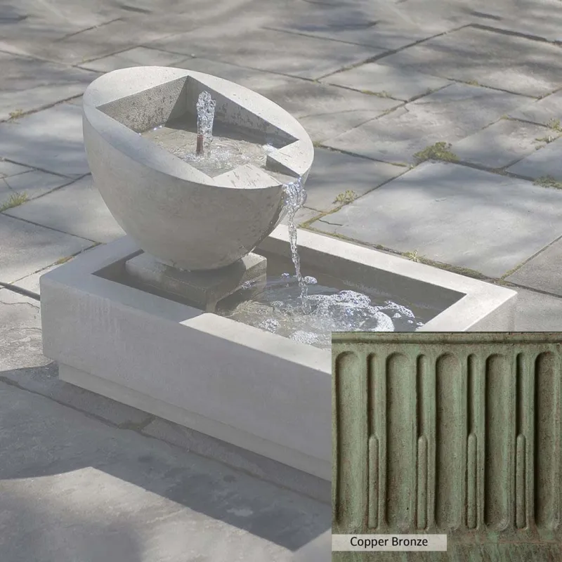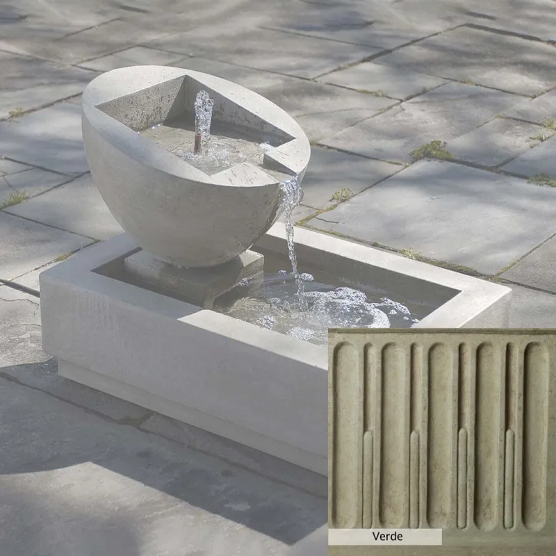 The Genesis II Fountain is handcrafted by skilled artisans in the USA. With their extensive experience, the Campania team applies a unique patina to ensure that each piece is special. This fountain is shown in the Verde color. Campania International’s proprietary cast stone blend is meticulously molded to create each piece used in the construction of this fountain. Due to the use of different materials and manufacturing processes, as well as varying photography conditions, natural variations in size, weight, and color can occur. The actual color may differ from the photo.