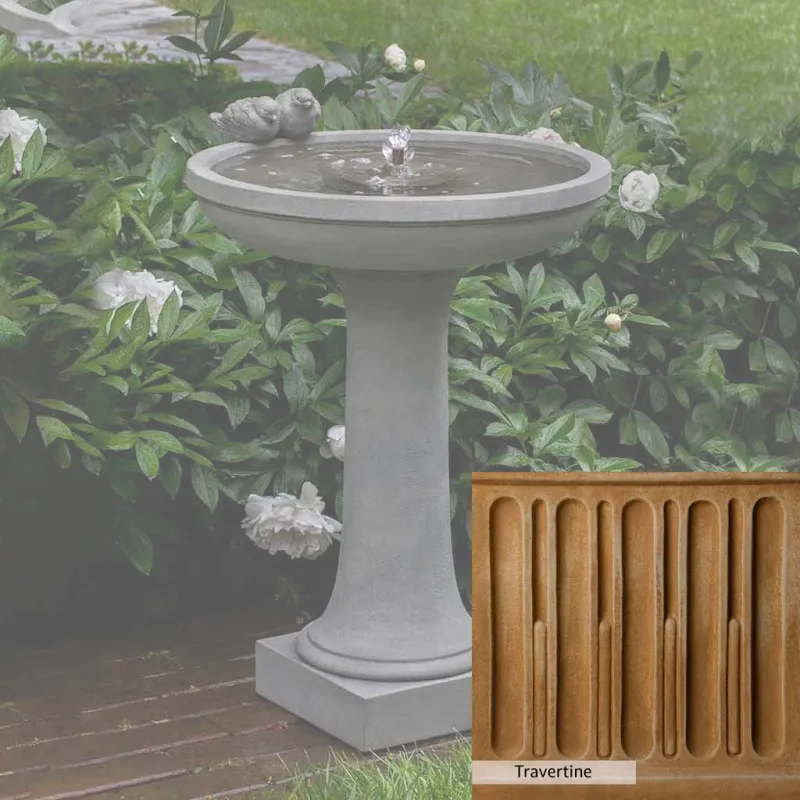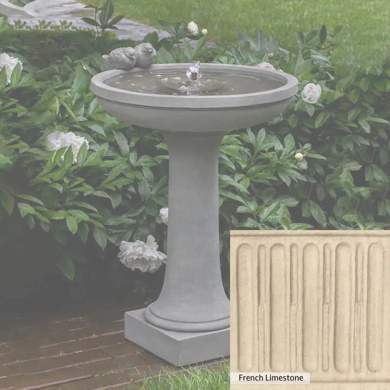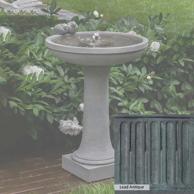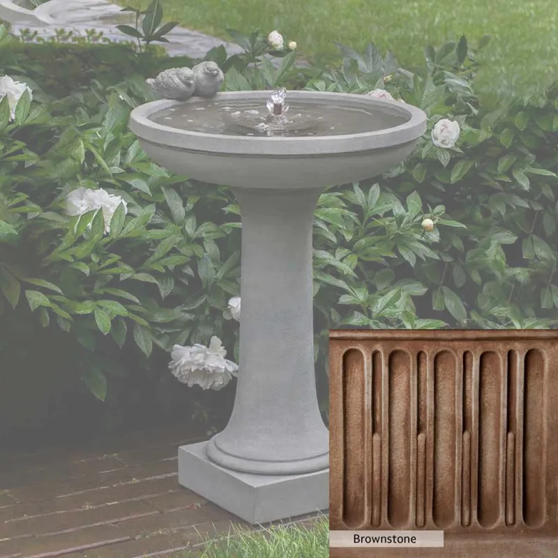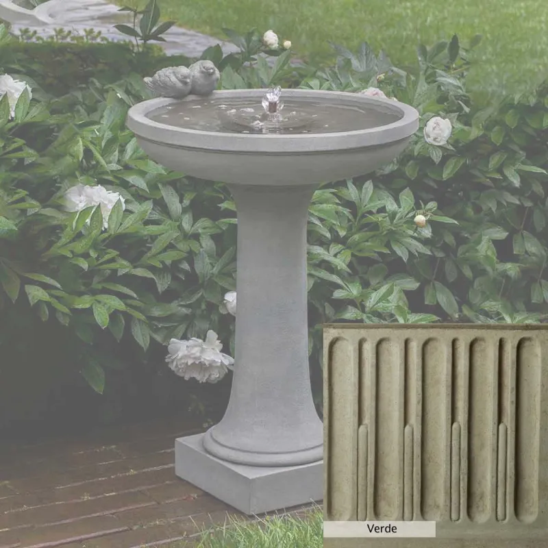 Skilled artisans in the USA handcraft the Juliet Fountain. The Campania team applies the unique patina using their experience, making each piece one-of-a-kind. This fountain is shown in the Alpine Stone color. Campania International’s unique cast stone blend is meticulously molded to create each piece used in the construction of this fountain. Due to the materials, manufacturing processes, and variations in photography conditions, natural differences can occur in size, weight, and color. The actual color may vary from the photo.