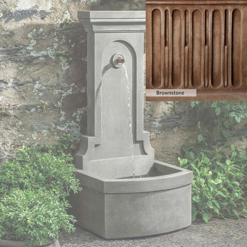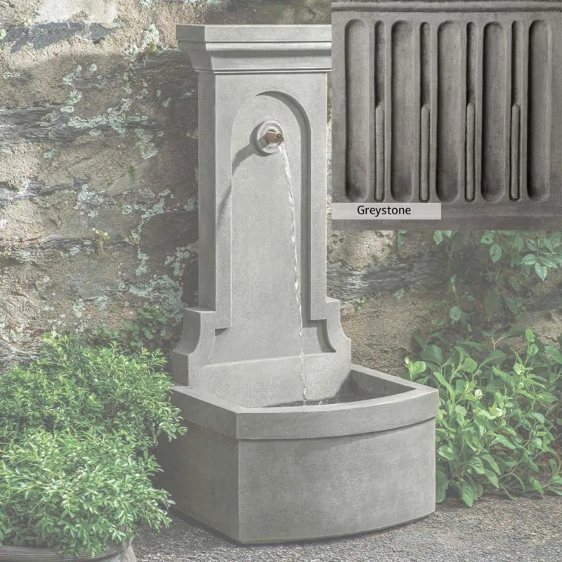 The Loggia Fountain is handcrafted by skilled artisans in the USA. The Campania team applies the unique patina with experienced hands, making each piece special. This fountain is featured in the Aged Limestone color. Campania International’s exclusive cast stone blend is expertly molded to create each piece in the construction of this fountain. Due to the materials used and manufacturing processes, as well as variations in photography conditions, natural differences may occur in size, weight, and color. The actual color may vary from the photo.