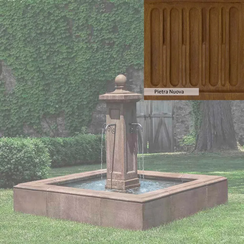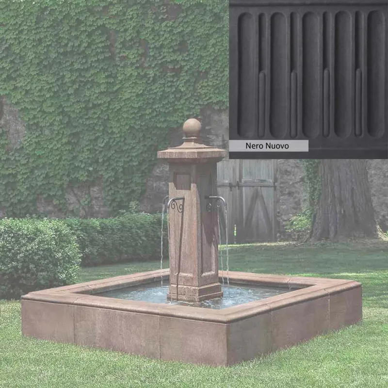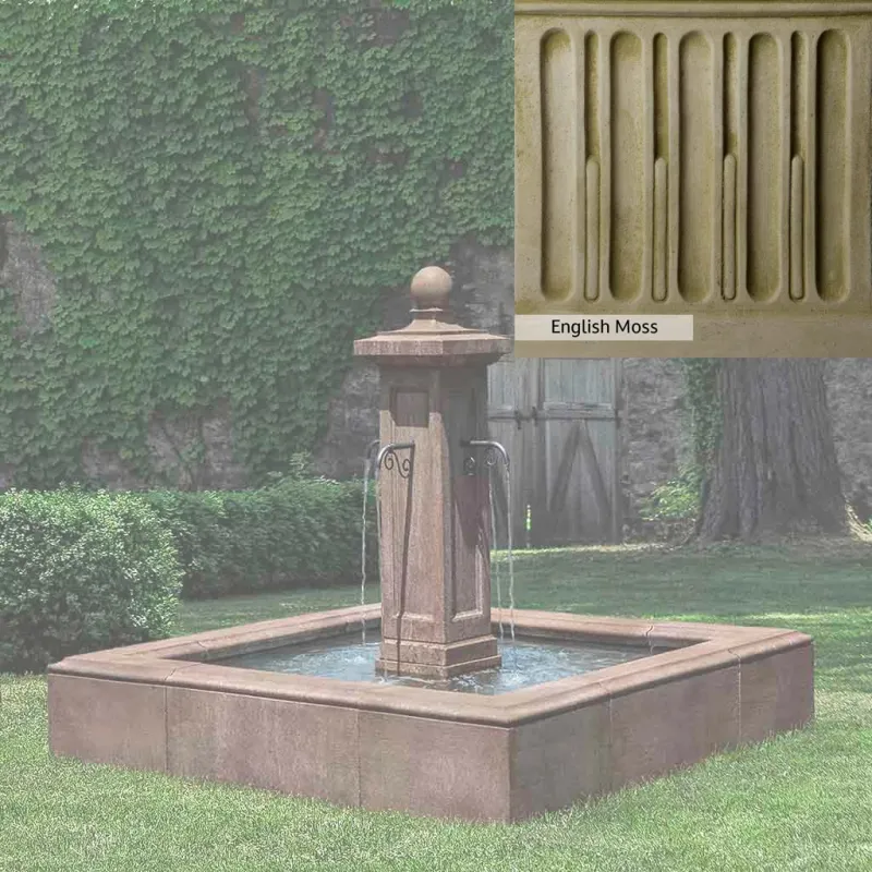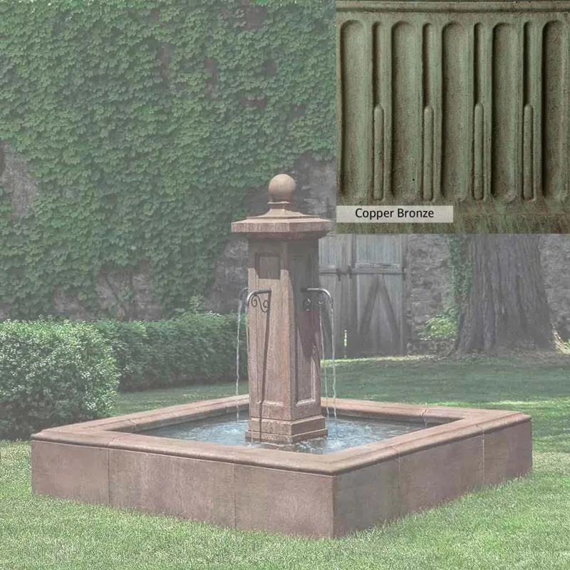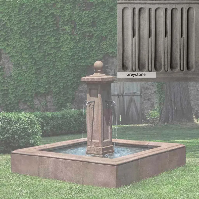 Skilled artisans in the USA handcraft the Luberon Estate Fountain. The Campania team applies a unique patina, making each piece one-of-a-kind. This fountain is shown in the Aged Limestone color. Due to materials, manufacturing processes, and variations in photography conditions, natural differences can occur in size, weight, and color. The actual color may vary from the photo.