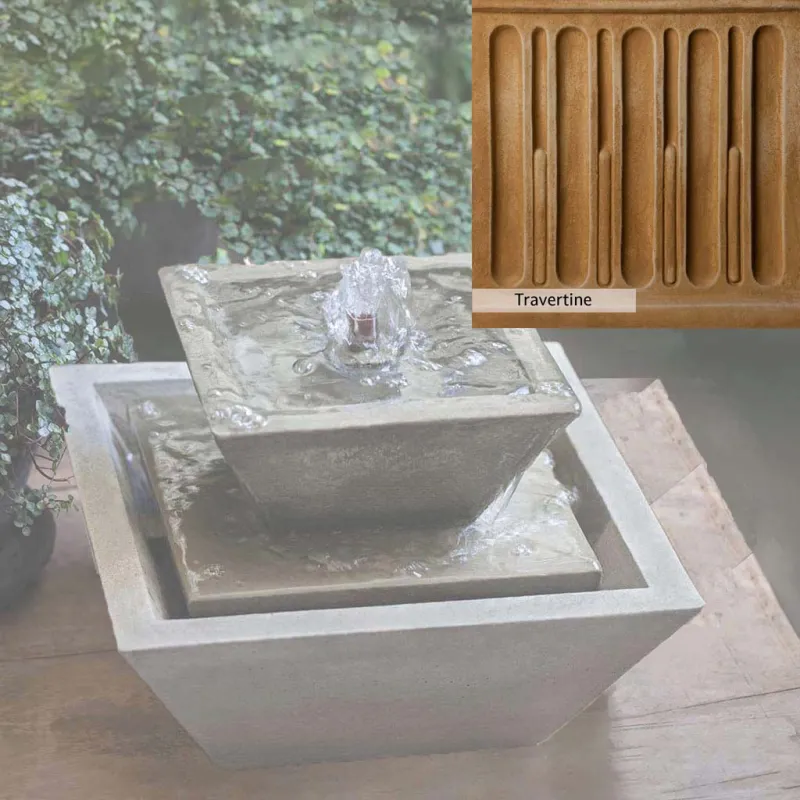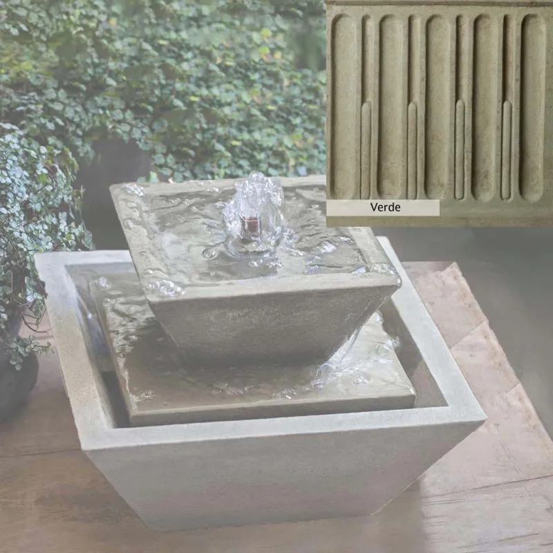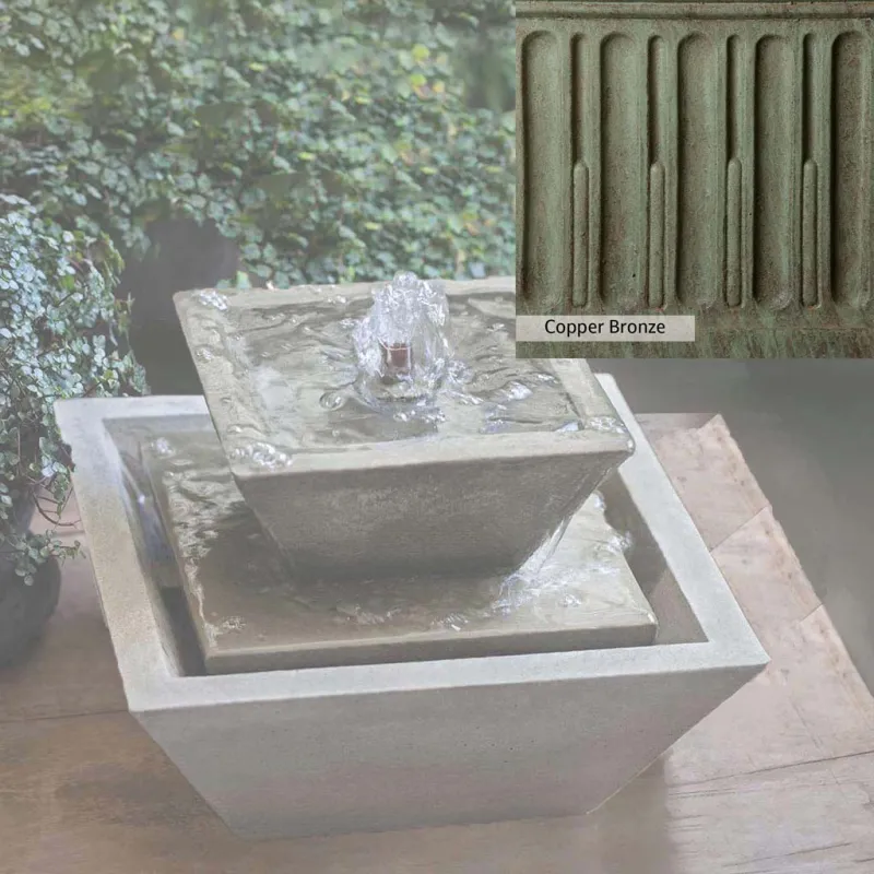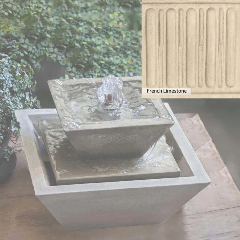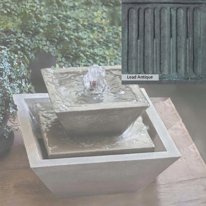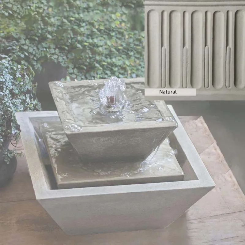 The M-Series Kenzo Fountain is handcrafted by skilled artisans in the USA. The Campania team applies the unique patina with experienced hands, making each piece special. This fountain is featured in the Alpine Stone color. Campania International’s exclusive cast stone blend is expertly molded to create each piece in the construction of this fountain. Due to the materials used and manufacturing processes, as well as variations in photography conditions, natural differences may occur in size, weight, and color. The actual color may vary from the photo.