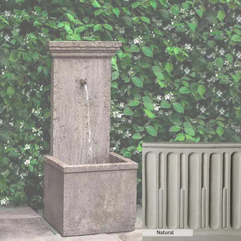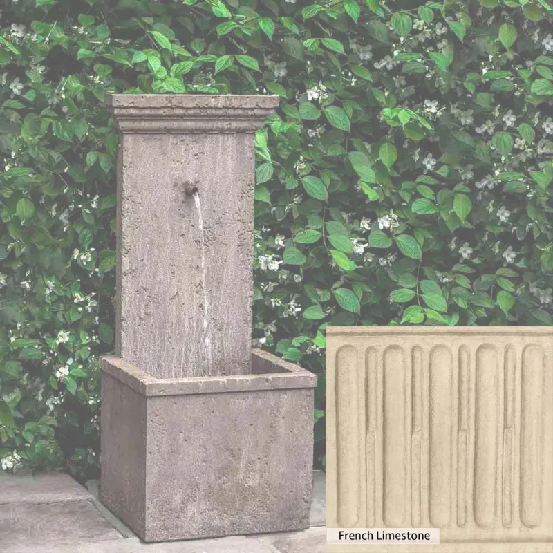 The Marais Wall Fountain is handcrafted by skilled artisans in the USA. The Campania team applies the unique patina with experienced hands, making each piece special. This fountain is featured in the Aged Limestone color. Campania International’s exclusive cast stone blend is expertly molded to create each piece in the construction of this fountain. Due to the materials used and manufacturing processes, as well as variations in photography conditions, natural differences may occur in size, weight, and color. The actual color may vary from the photo.