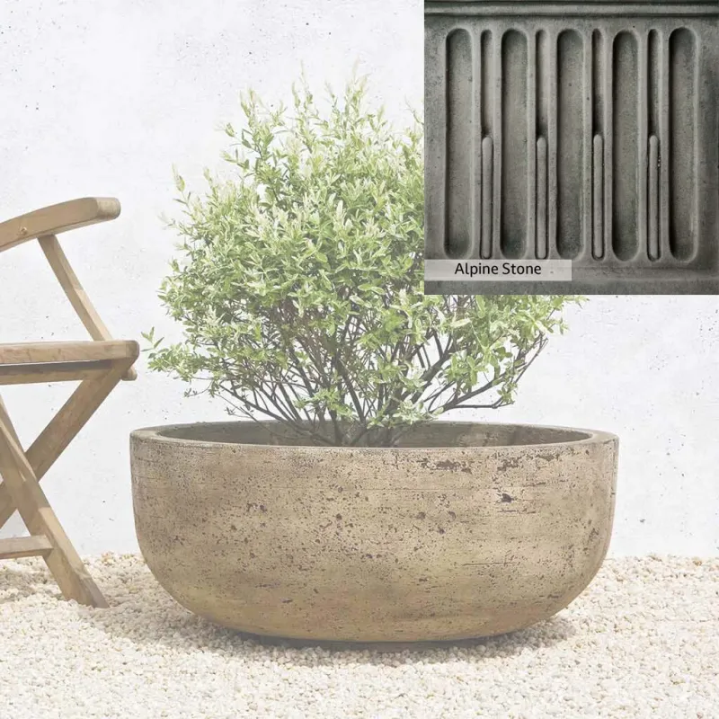The Mesa Large Planter by Campania International adds charm and character to any space. Planters can be placed outdoors on a patio or in the home office. Planters bring the garden to you, allowing for greenery to be placed in areas that might not grow a garden, like your front door stoop or a balcony garden. Using indoors, planters offer a home to indoor plants adding life and softness to your space. The Mesa Large Planter by Campania International is just the right piece, made of cast stone and hand-stained to order this planter offers a lifetime of enjoyment.