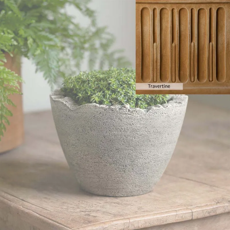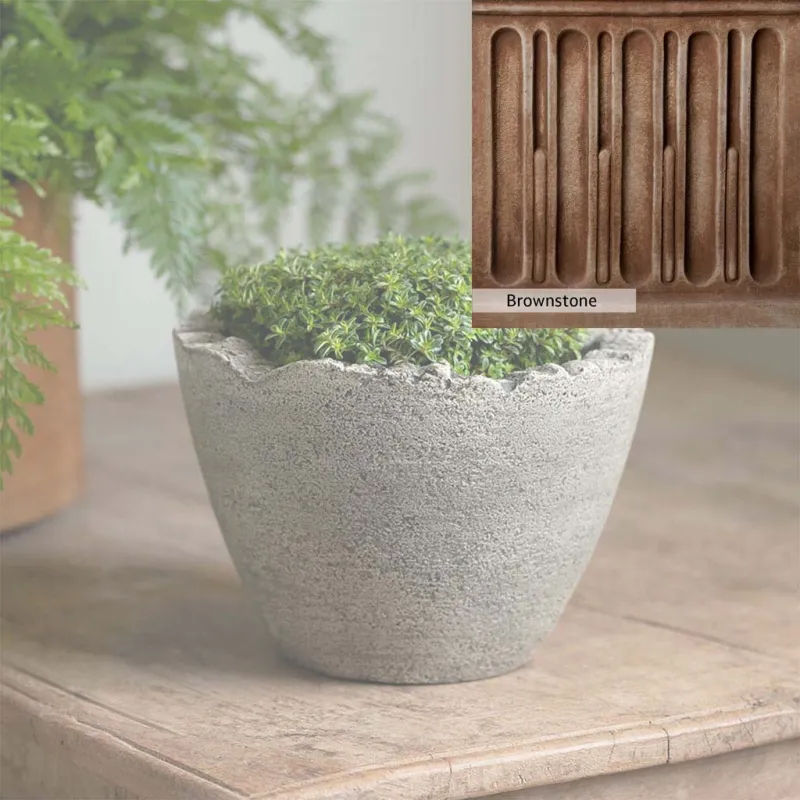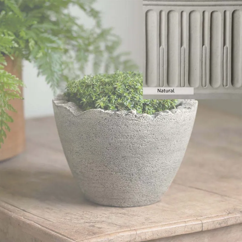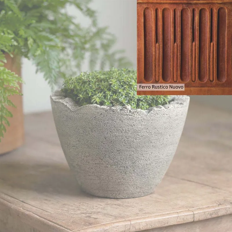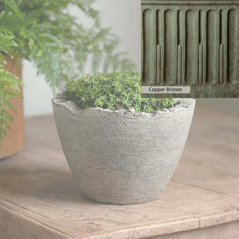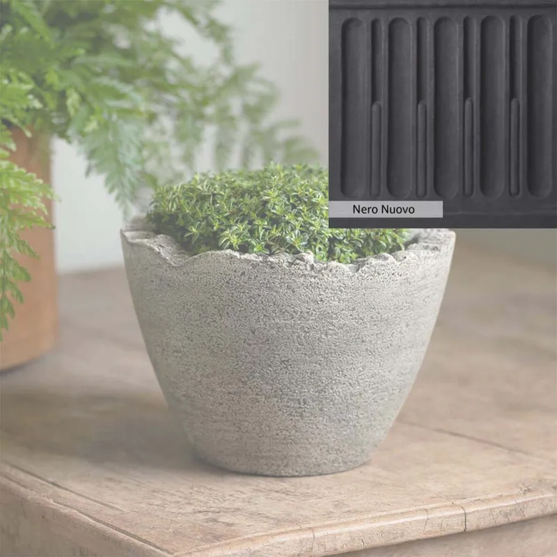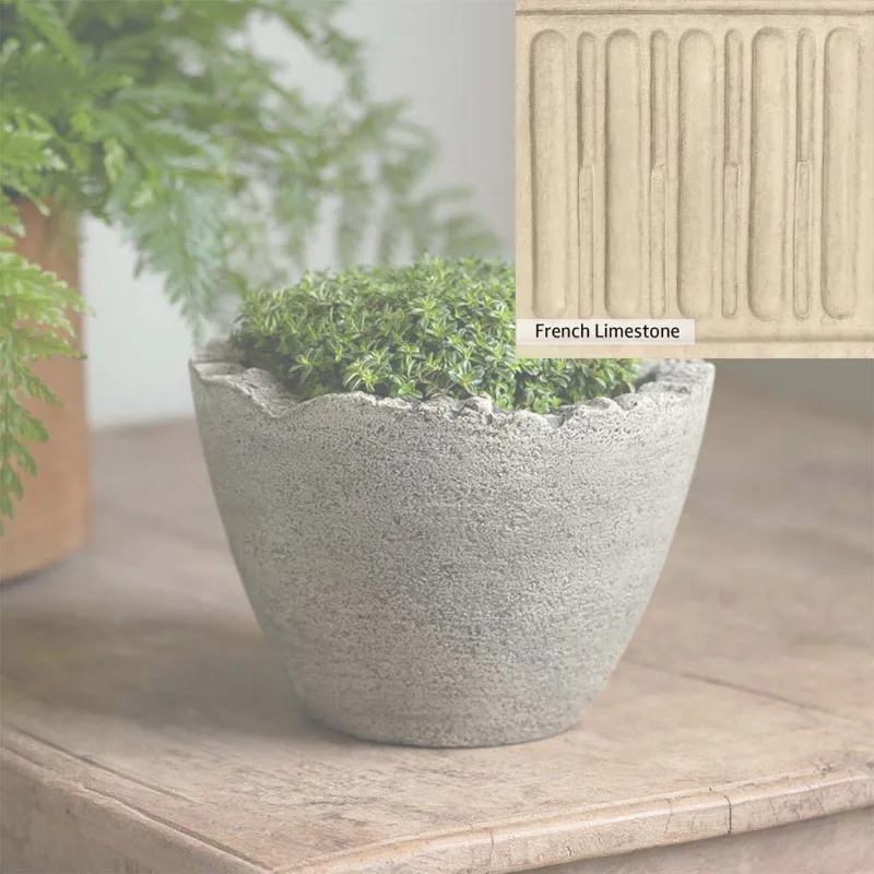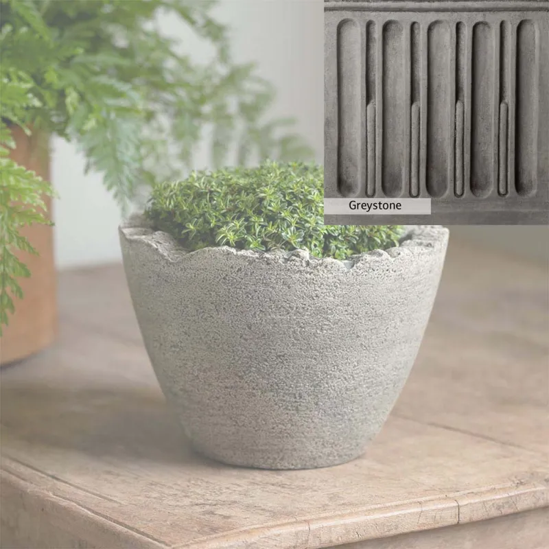 The Campania International Mini Broken Egg Planter is a cast stone planter designed with character. This low-profile planter is perfect to add as a tabletop decoration or as a planter in the home. The Mini Broken Egg Planter is simple in style and can match any home and garden decor. Shown with the Esmee Urn, these two planters make a great display, perfect for showcasing your favorite flowers. Cast stone offers superior stability, durability, and longevity compared to other materials.