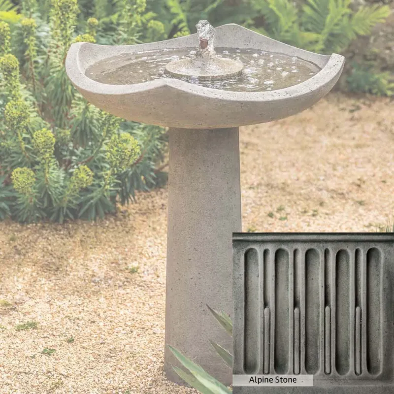 SKU: N/A Category: Campania International Tags: Bird Bath Fountain, Cast Stone Fountain, FTNCOV-SM, Greystone, In Stock, LTL Ship, Medium Fountain, No Light, No Refill