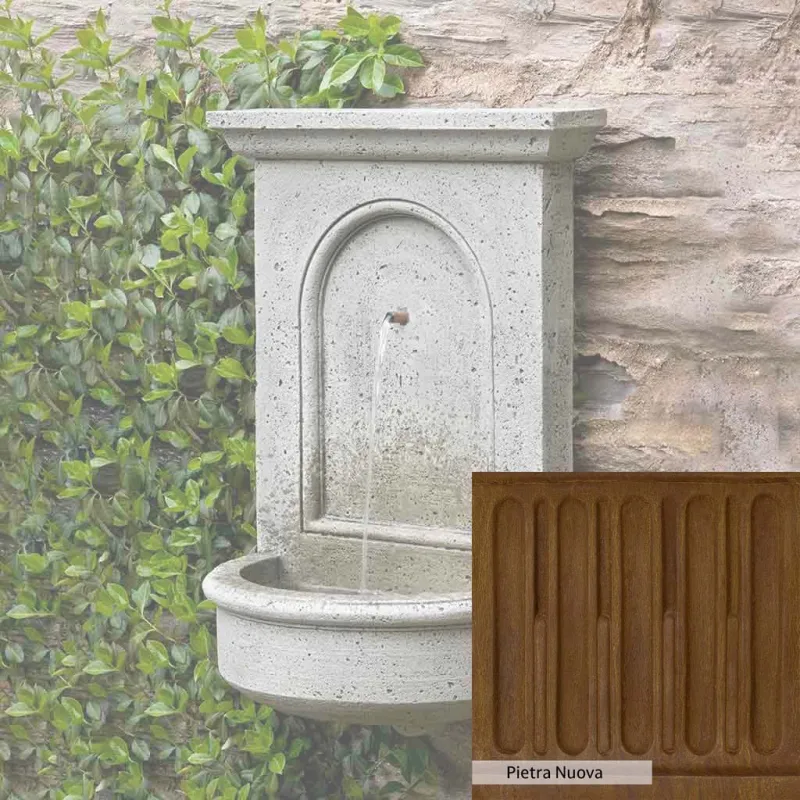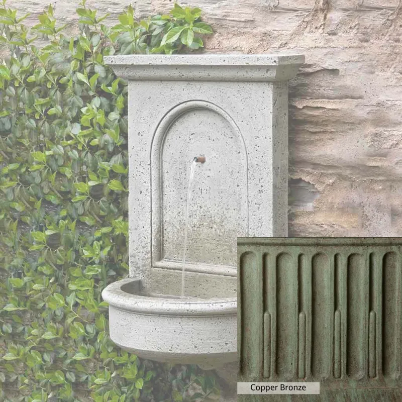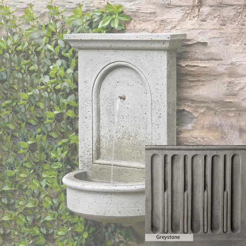 The Portico Fountain is handcrafted by skilled artisans in the USA. The Campania team applies the unique patina with experienced hands, making each piece special. This fountain is featured in the Alpine Stone color. Campania International’s exclusive cast stone blend is expertly molded to create each piece in the construction of this fountain. Due to the materials used and manufacturing processes, as well as variations in photography conditions, natural differences may occur in size, weight, and color. The actual color may vary from the photo.