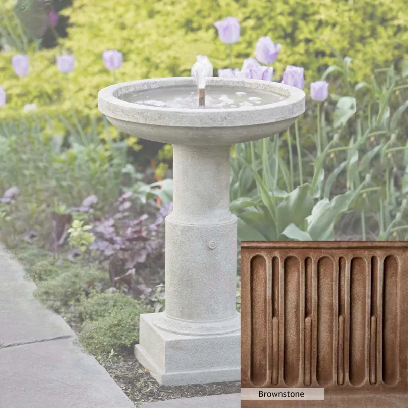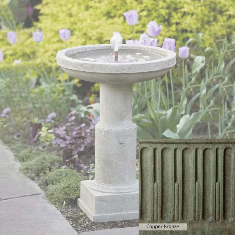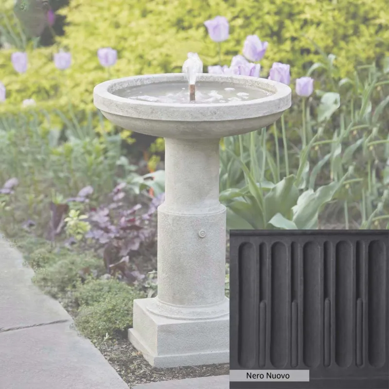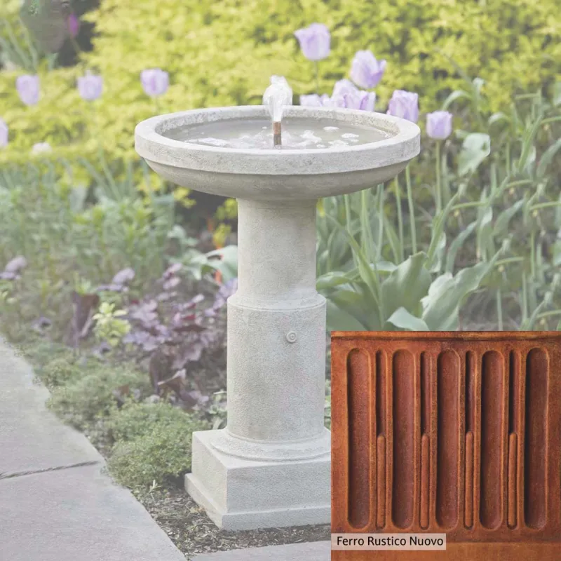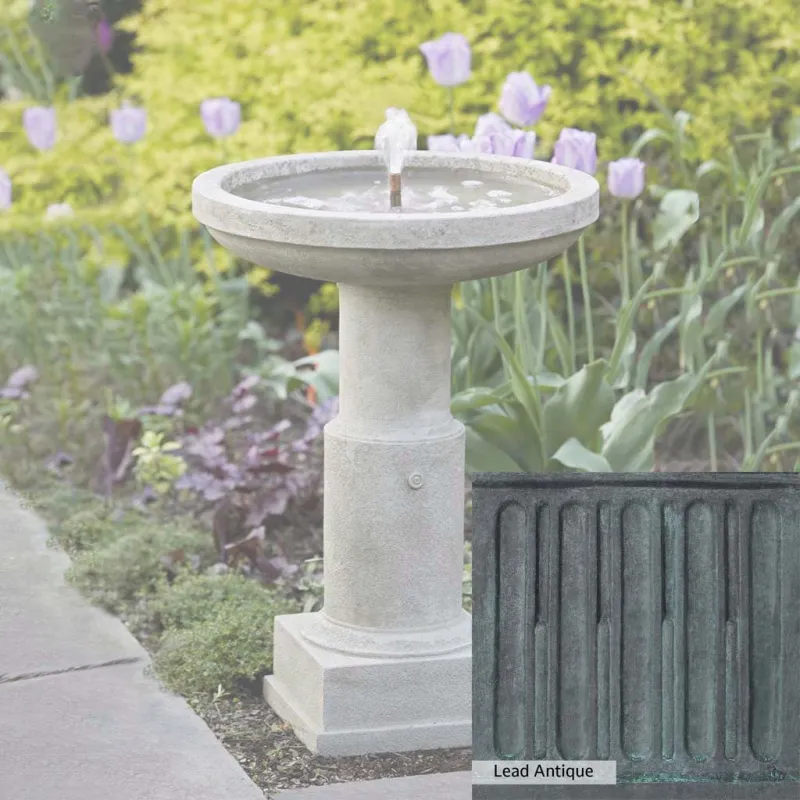 The Powys Fountain is handcrafted by skilled artisans in the USA. With their extensive experience, the Campania team applies a unique patina to ensure that each piece is special. This fountain is shown in the Greystone color. Campania International’s proprietary cast stone blend is meticulously molded to create each piece used in the construction of this fountain. Due to the use of different materials and manufacturing processes, as well as varying photography conditions, natural variations in size, weight, and color can occur. The actual color may differ from the photo.