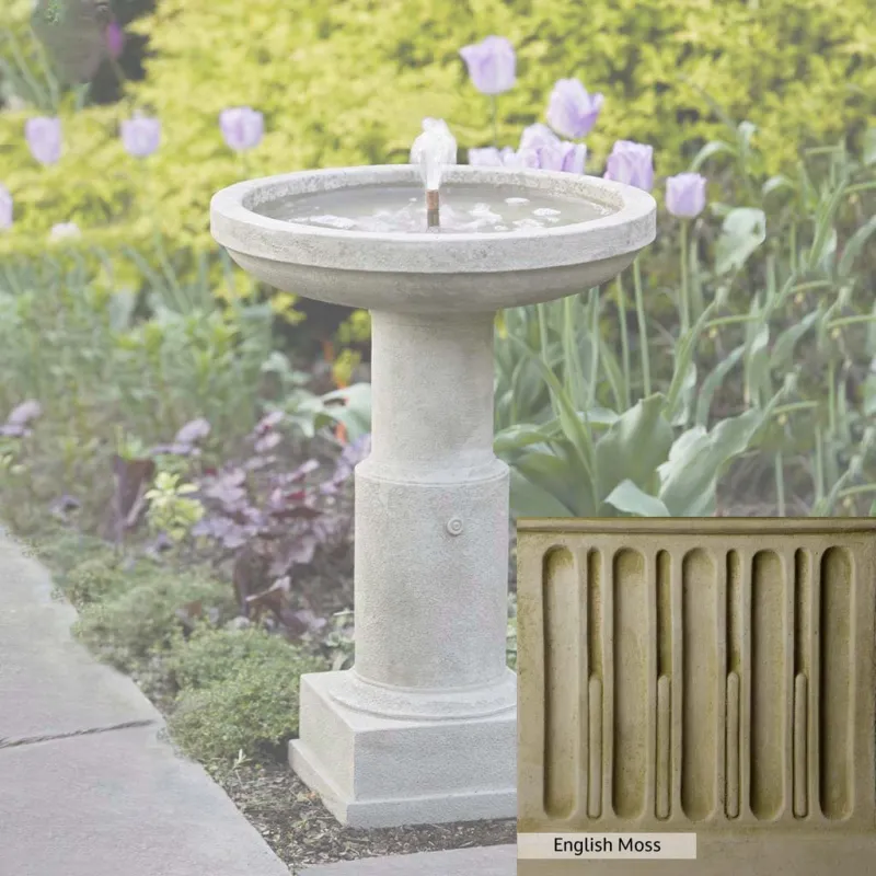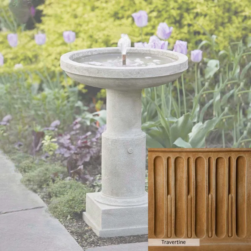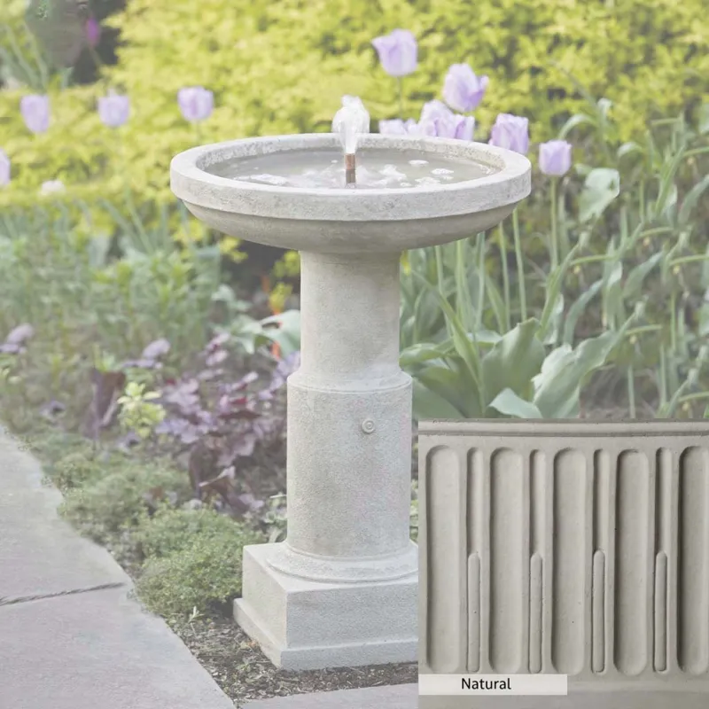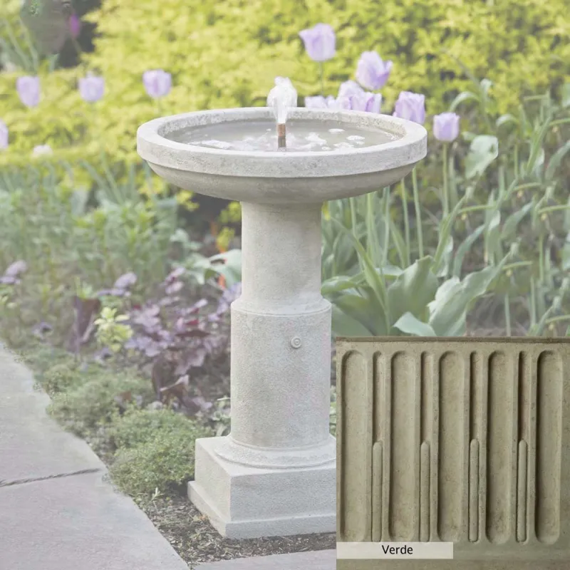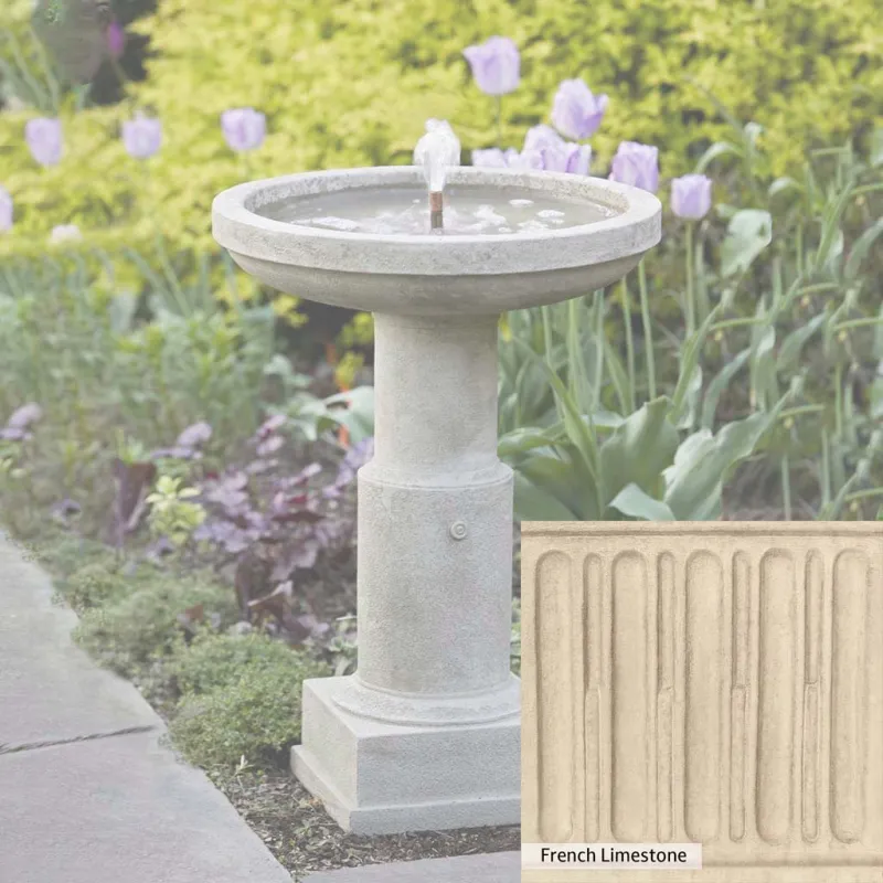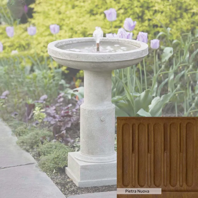 The Powys Fountain is handcrafted by skilled artisans in the USA. With their extensive experience, the Campania team applies a unique patina to ensure that each piece is special. This fountain is shown in the Greystone color. Campania International’s proprietary cast stone blend is meticulously molded to create each piece used in the construction of this fountain. Due to the use of different materials and manufacturing processes, as well as varying photography conditions, natural variations in size, weight, and color can occur. The actual color may differ from the photo.