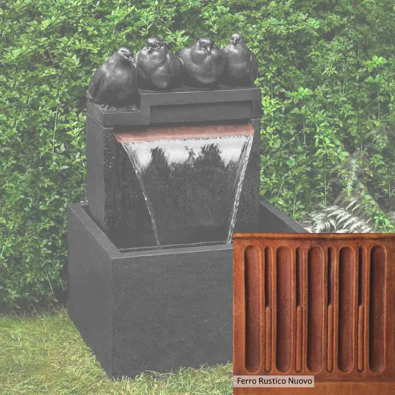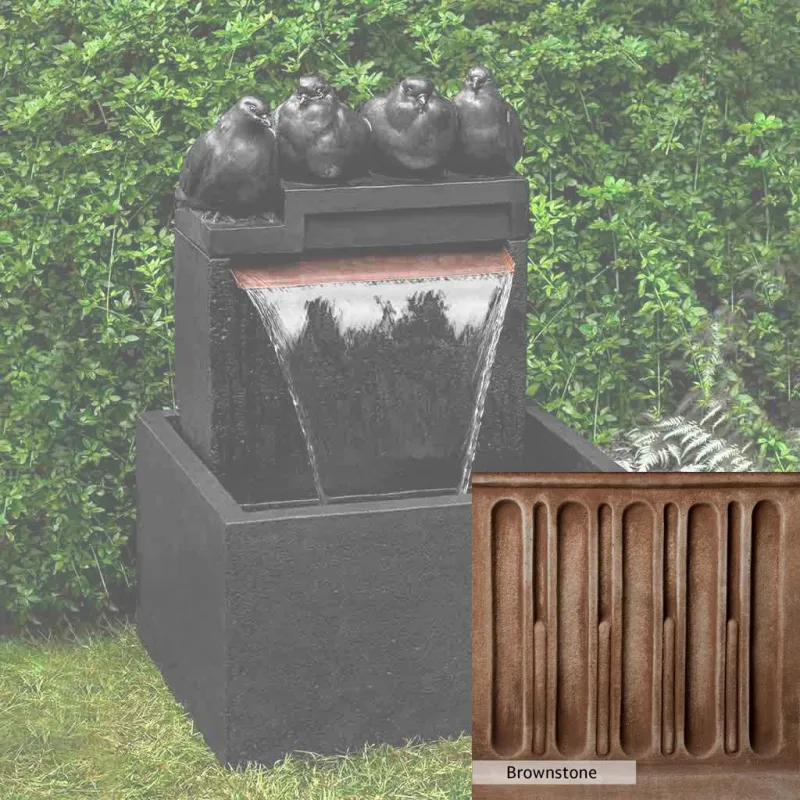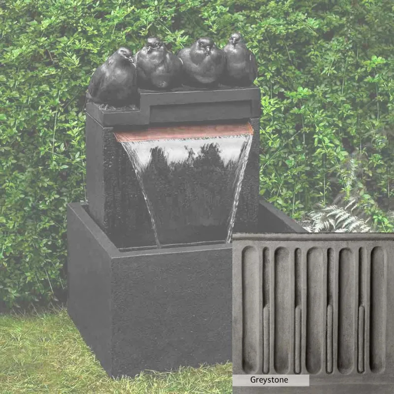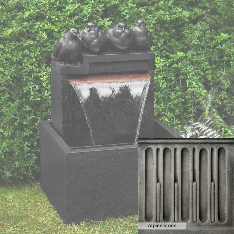 The Quartet Fountain is handcrafted by skilled artisans in the USA. The Campania team applies a unique patina with experienced hands, making each piece special. This fountain is featured in the Nero Nuovo color. Campania International’s exclusive cast stone blend is expertly molded to create each piece in the construction of this fountain. Due to the materials used and manufacturing processes, as well as variations in photography conditions, natural differences may occur in size, weight, and color. The actual color may vary from the photo.