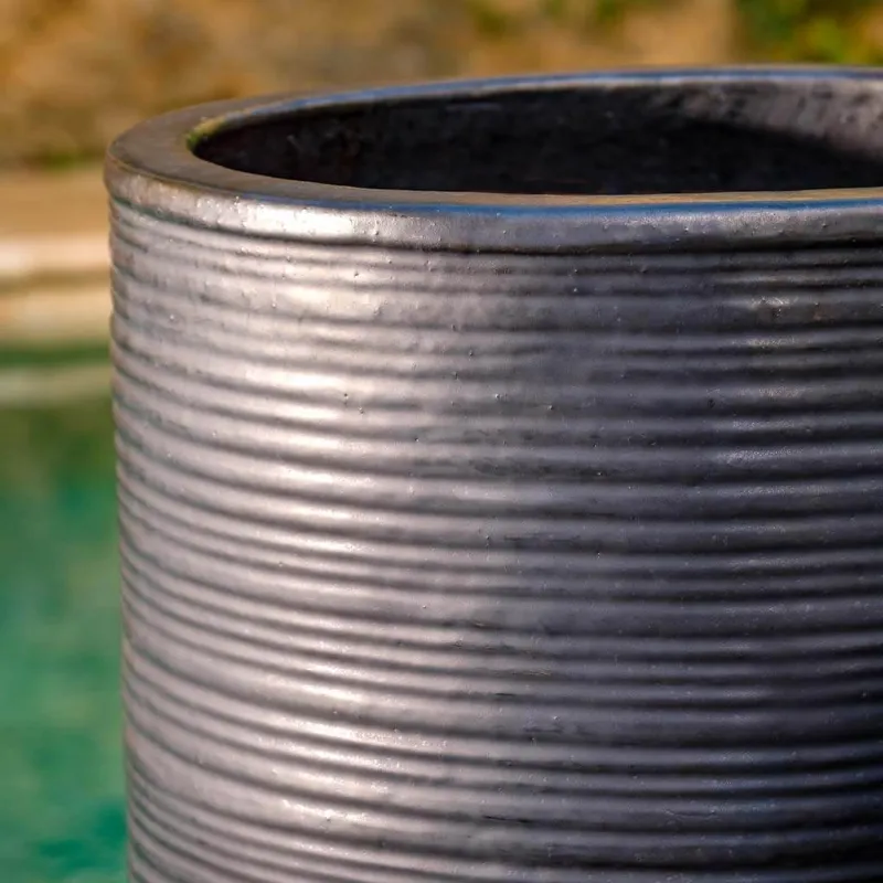 The Campania International Riga Planter in Graphite set of 3 Planter Set has been meticulously designed for the ideal garden aesthetic. Crafted by Campania artisans in Southeast Asia, these high-fired and intricately designed planters can reach temperatures of up to 1000 degrees centigrade, providing them with frost- and weather-resistance. Due to the handmade nature of these planters, some colors may vary. Sets can not be divided.