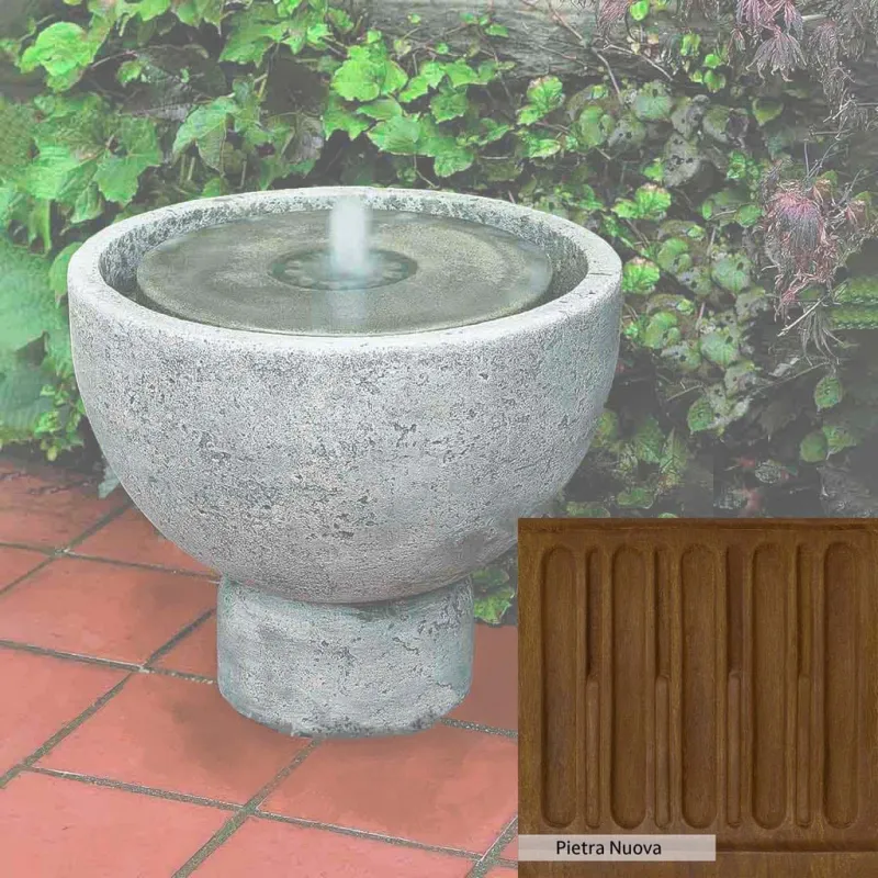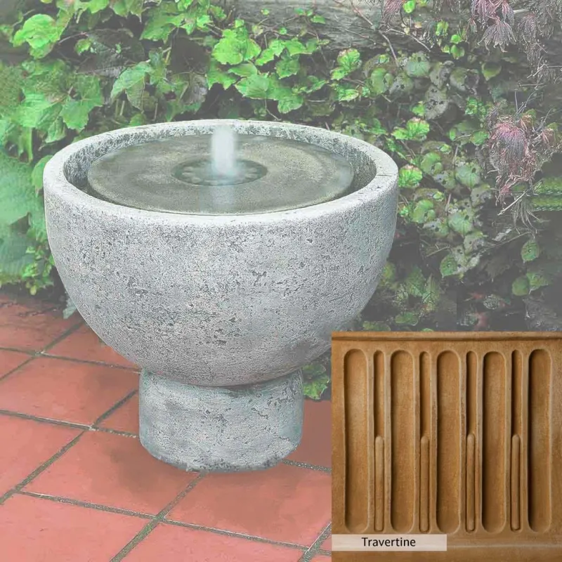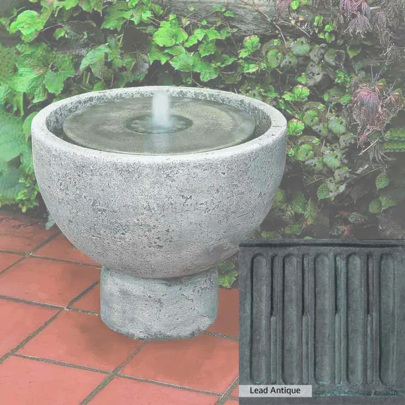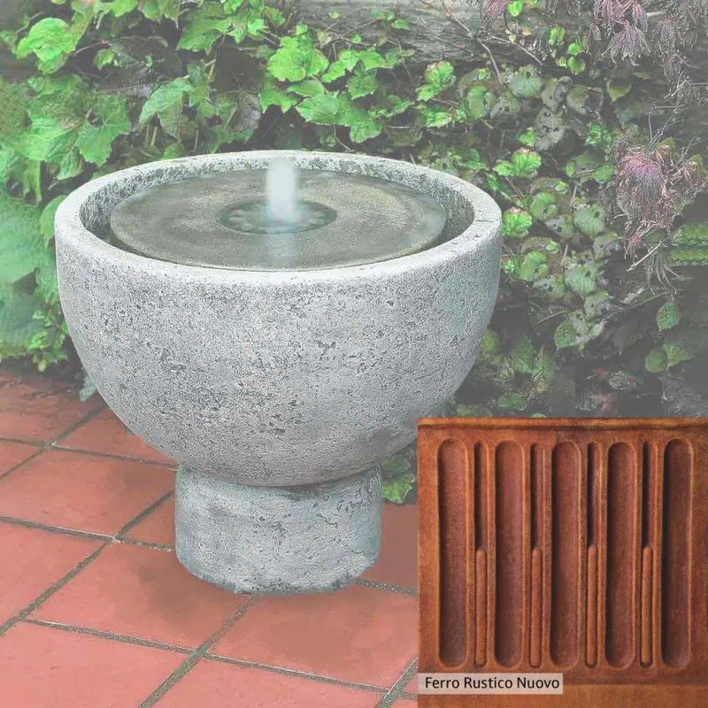 The Rustica Pot Fountain is handcrafted by skilled artisans in the USA. The Campania team applies a unique patina with experienced hands, making each piece special. This fountain is featured in the Alpine Stone color. Campania International’s exclusive cast stone blend is expertly molded to create each piece in the construction of this fountain. Due to the materials used and manufacturing processes, as well as variations in photography conditions, natural differences may occur in size, weight, and color. The actual color may vary from the photo.