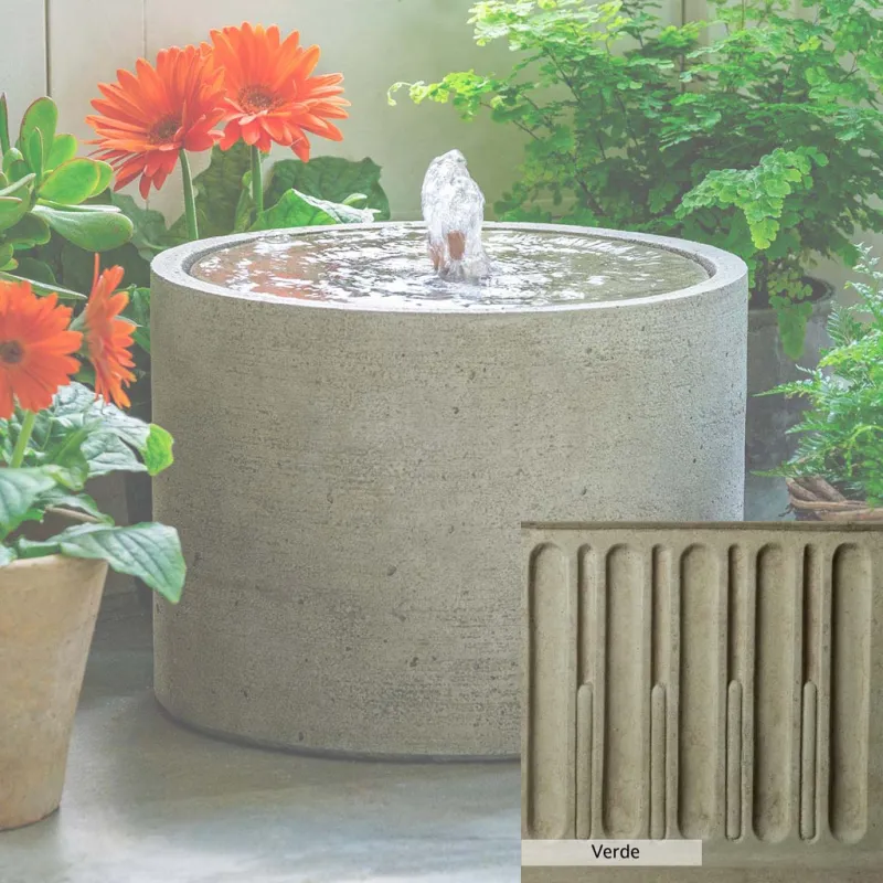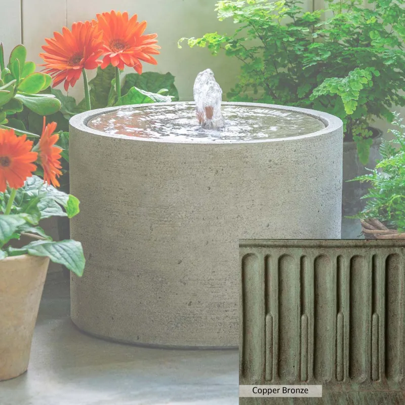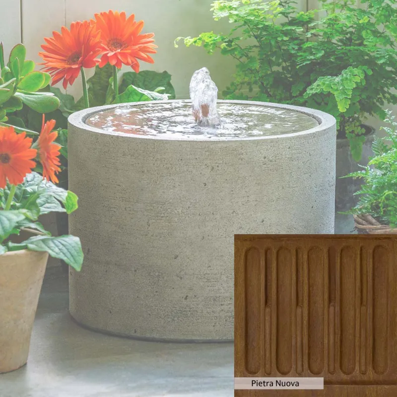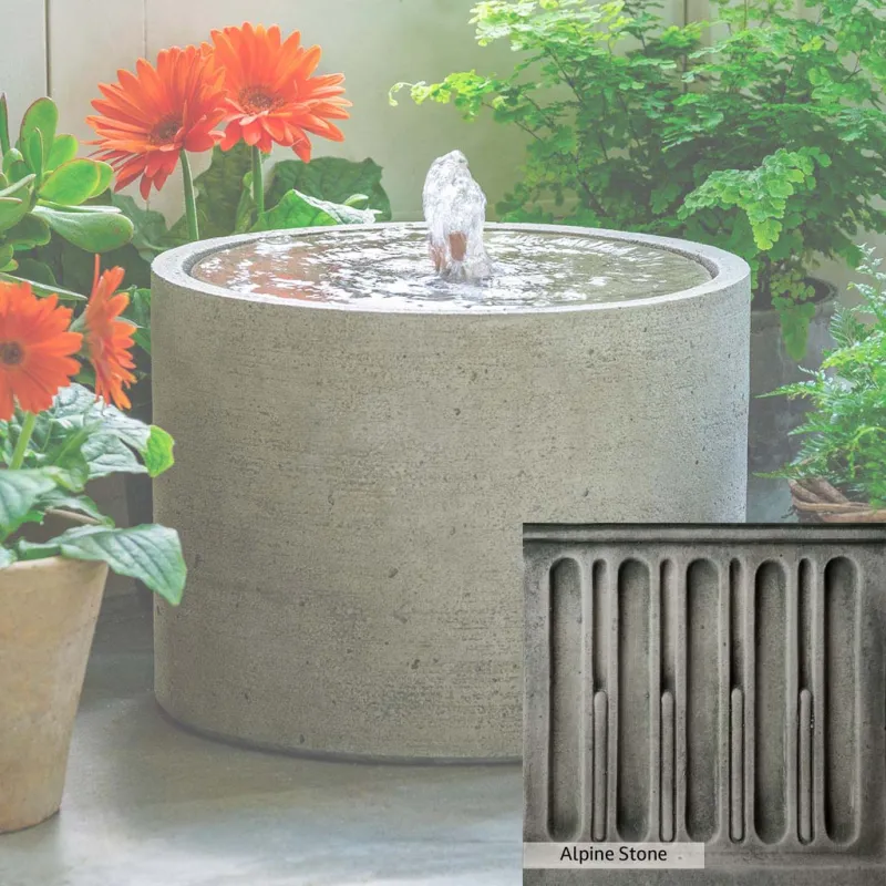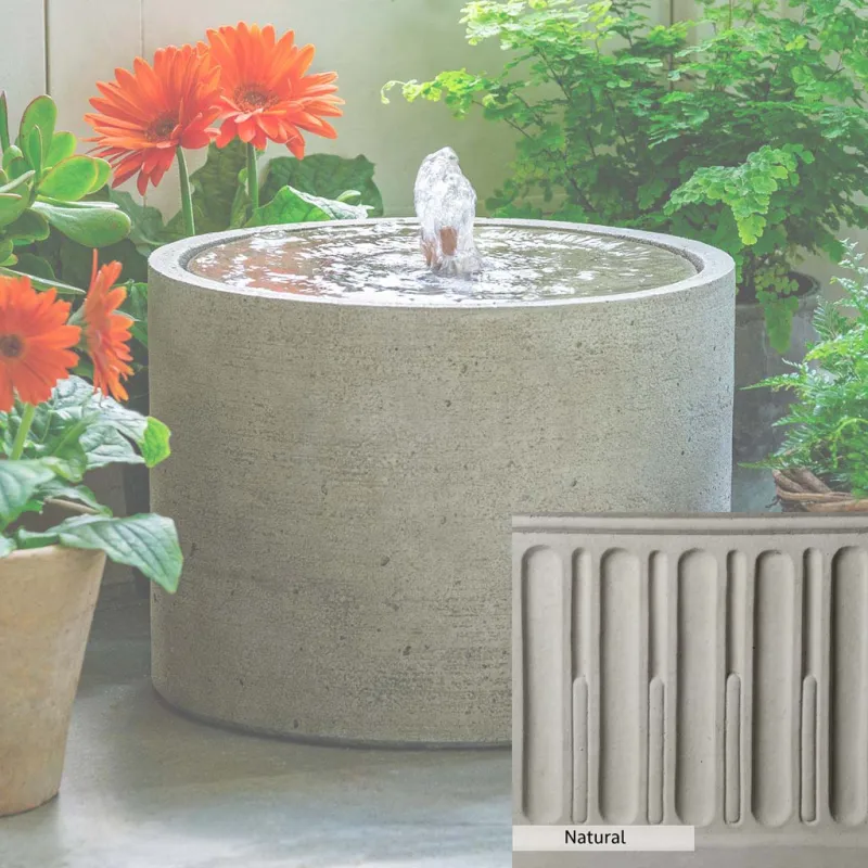 Skilled artisans in the USA handcraft the Salinas Low Fountain. The Campania team applies the unique patina using their experience, making each piece one-of-a-kind. This fountain is shown in the Greystone color. Campania International’s unique cast stone blend is meticulously molded to create each piece used in the construction of this fountain. Due to the materials, manufacturing processes, and variations in photography conditions, natural differences can occur in size, weight, and color. The actual color may vary from the photo.