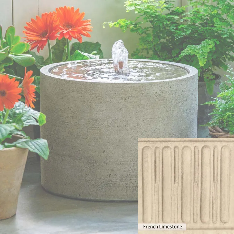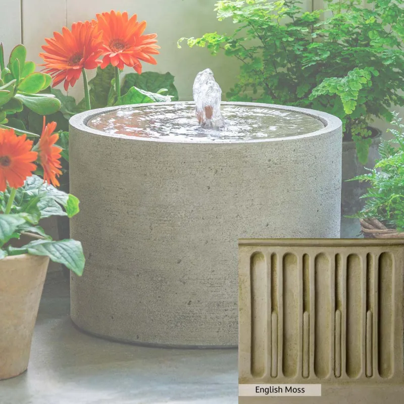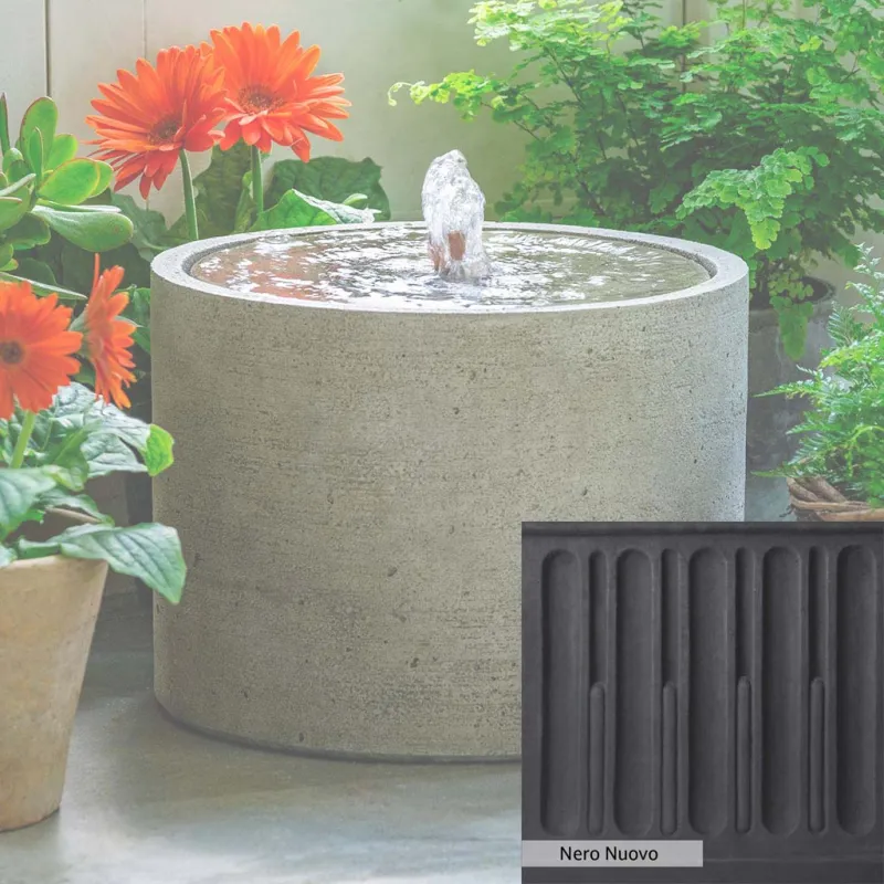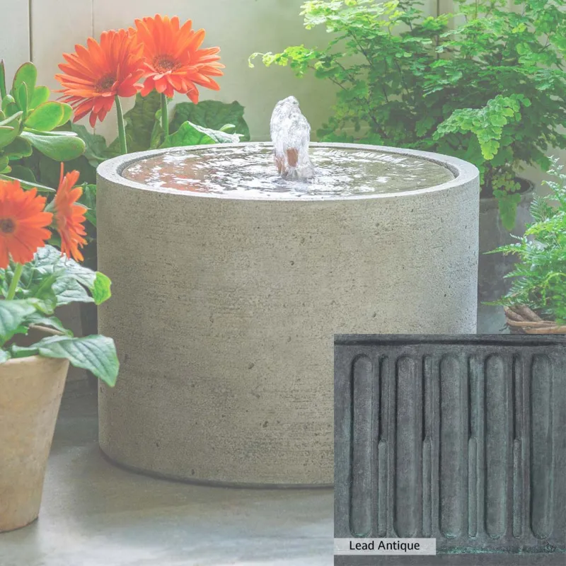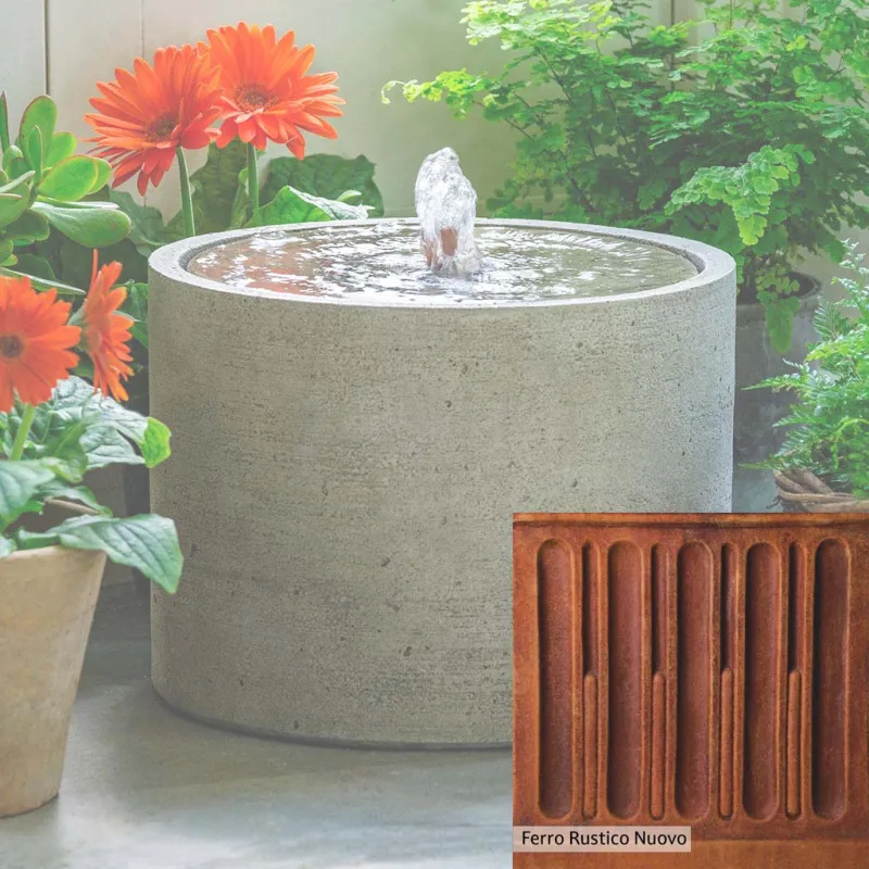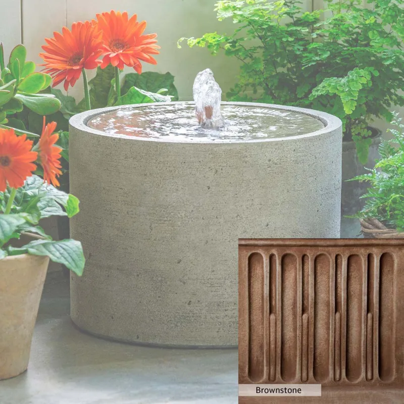 Skilled artisans in the USA handcraft the Salinas Low Fountain. The Campania team applies the unique patina using their experience, making each piece one-of-a-kind. This fountain is shown in the Greystone color. Campania International’s unique cast stone blend is meticulously molded to create each piece used in the construction of this fountain. Due to the materials, manufacturing processes, and variations in photography conditions, natural differences can occur in size, weight, and color. The actual color may vary from the photo.
