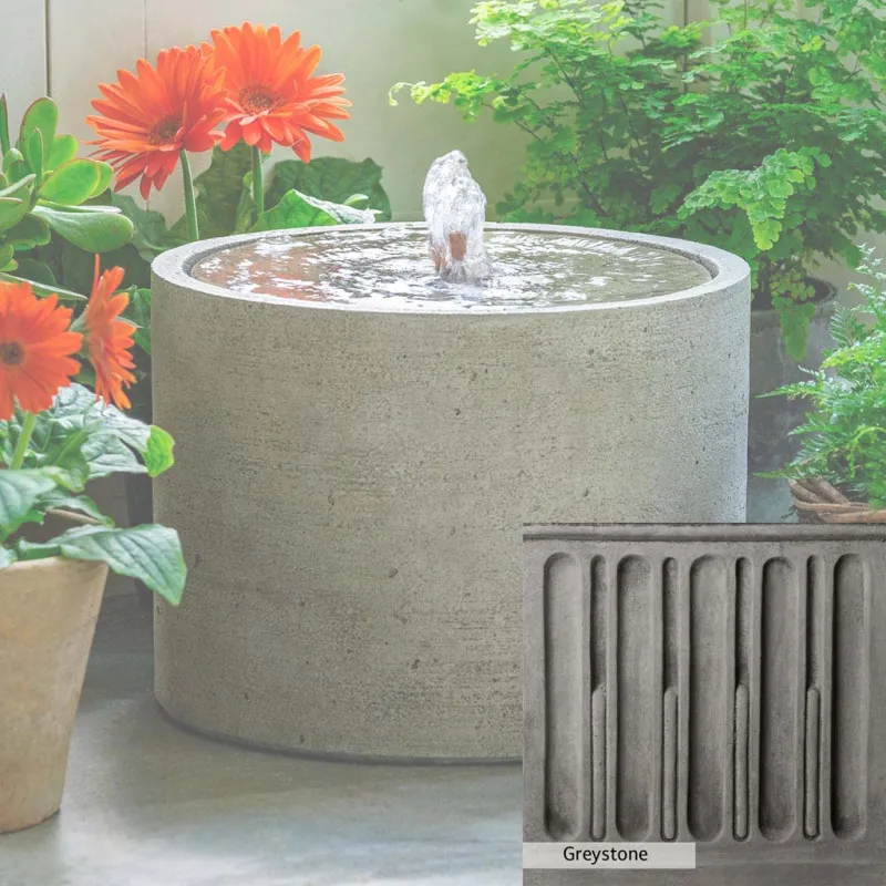 SKU: N/A Category: Campania International Tags: Cast Stone Fountain, FTNCOV-SM, Greystone, Limited Availability, Modern Fountain, No Light, No Refill, Round Fountain, Tabletop Fountain