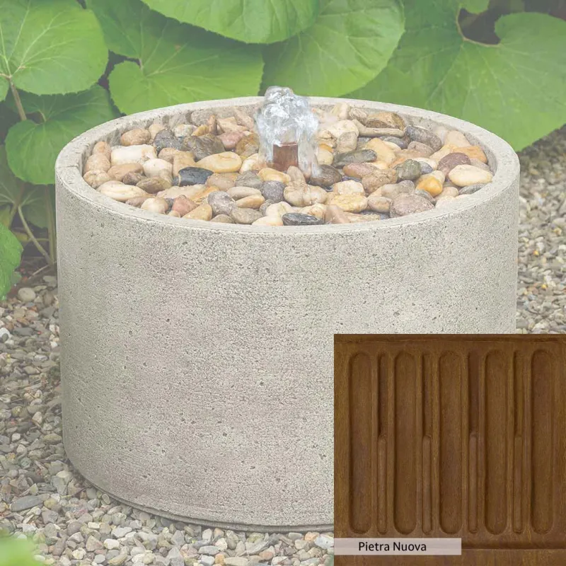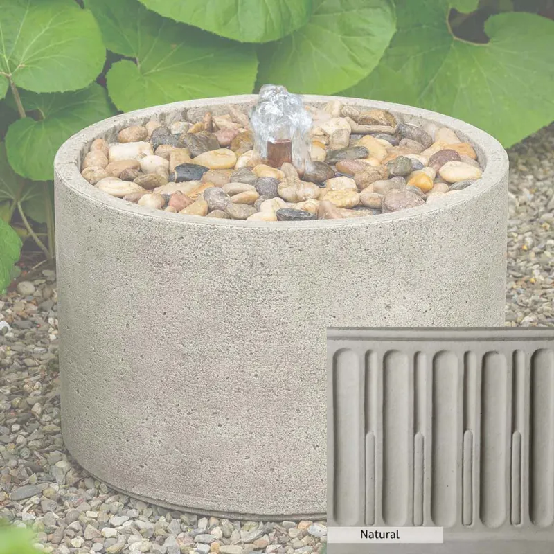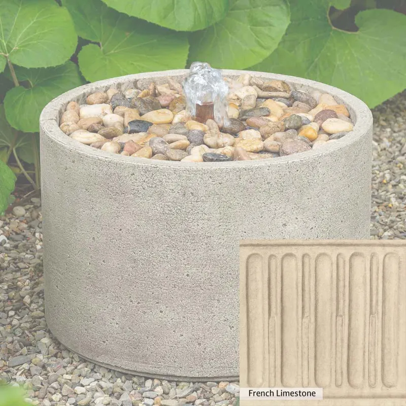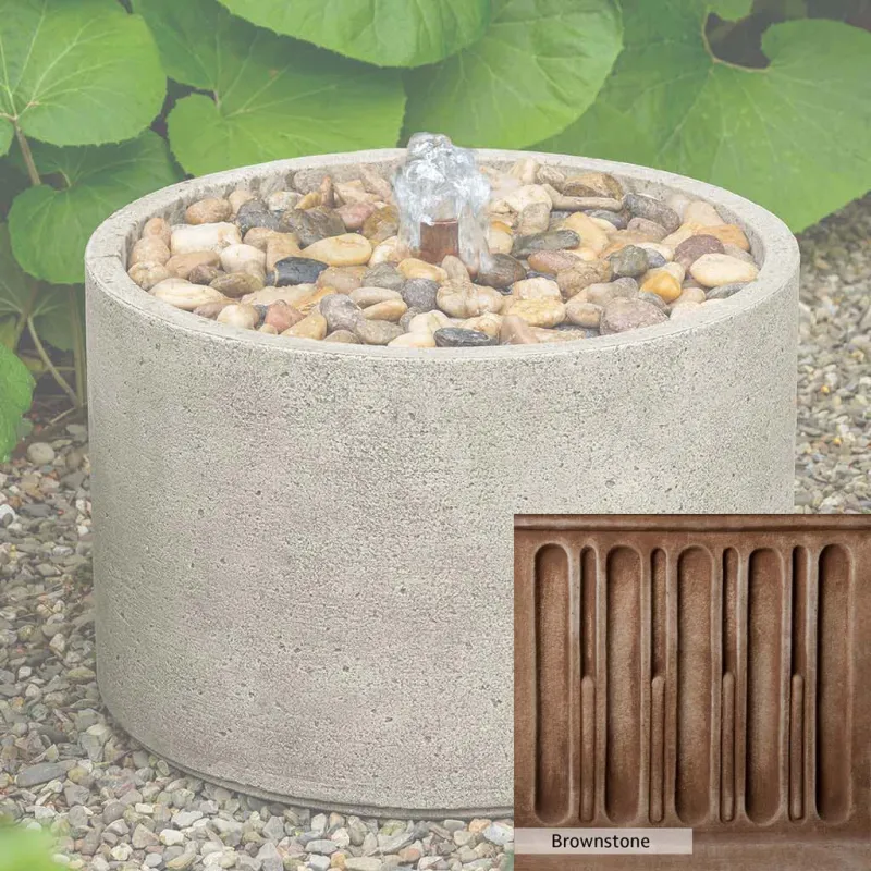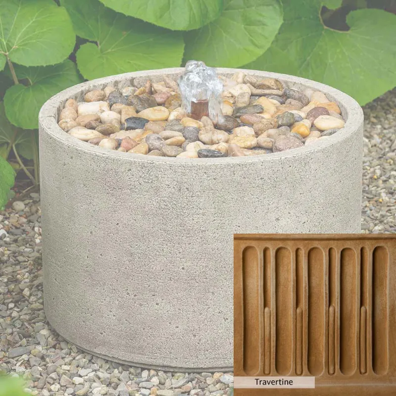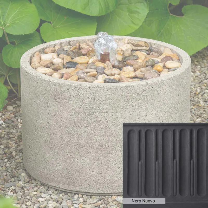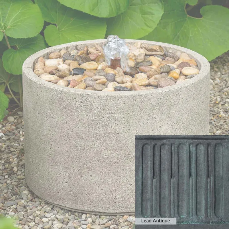 The Salinas Pebble Fountain is handcrafted by skilled artisans in the USA. With their extensive experience, the Campania team applies a unique patina to ensure that each piece is special. This fountain is shown in the Greystone color. Campania International’s proprietary cast stone blend is meticulously molded to create each piece used in the construction of this fountain. Due to the use of different materials and manufacturing processes, as well as varying photography conditions, natural variations in size, weight, and color can occur. The actual color may differ from the photo.