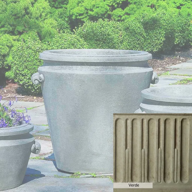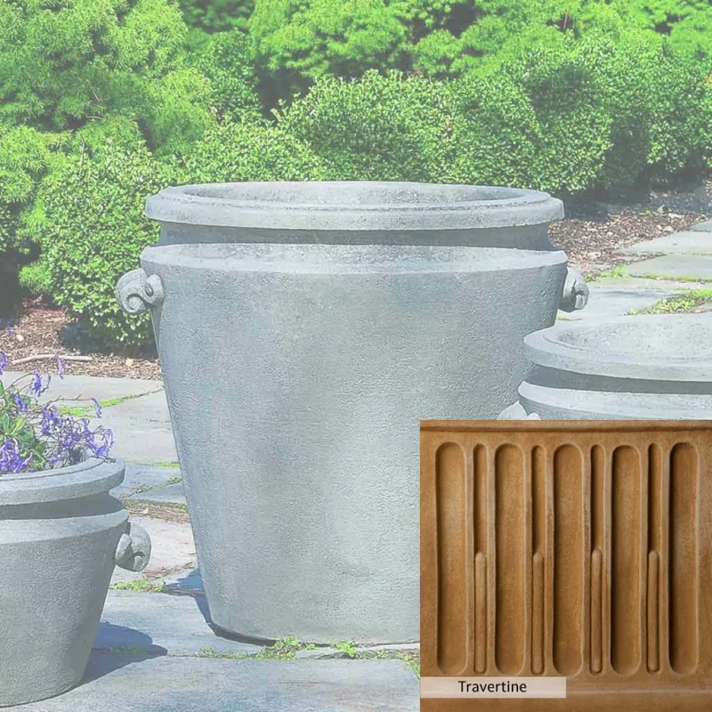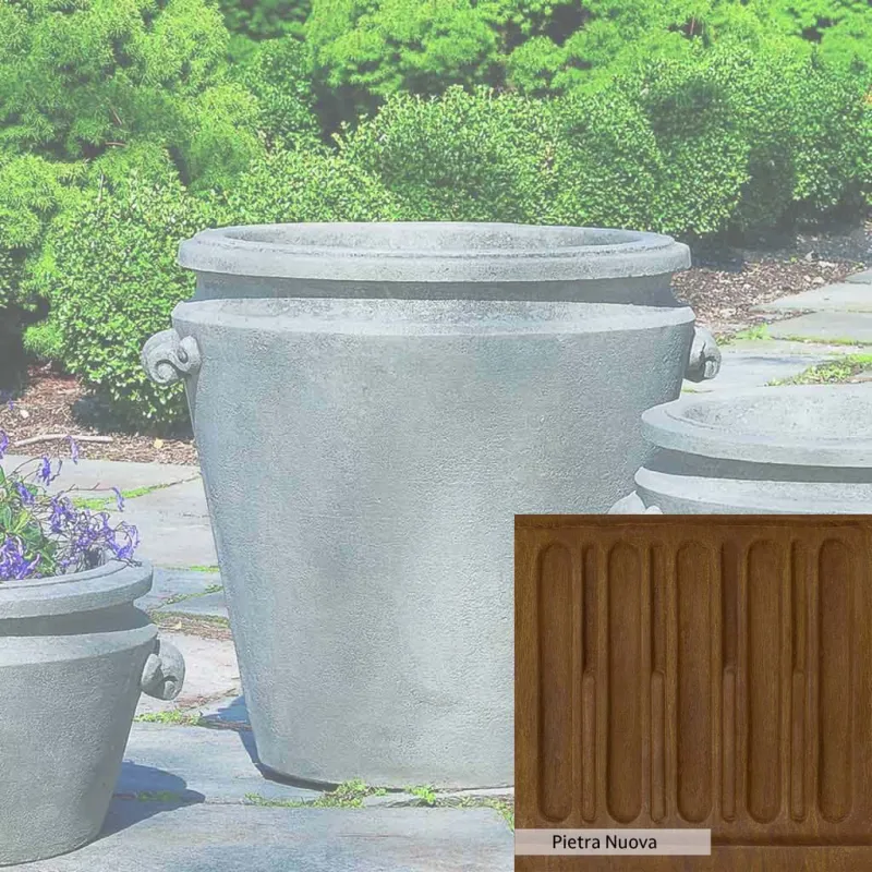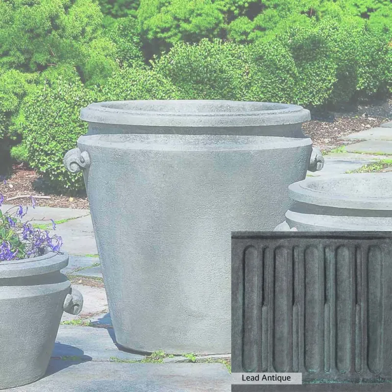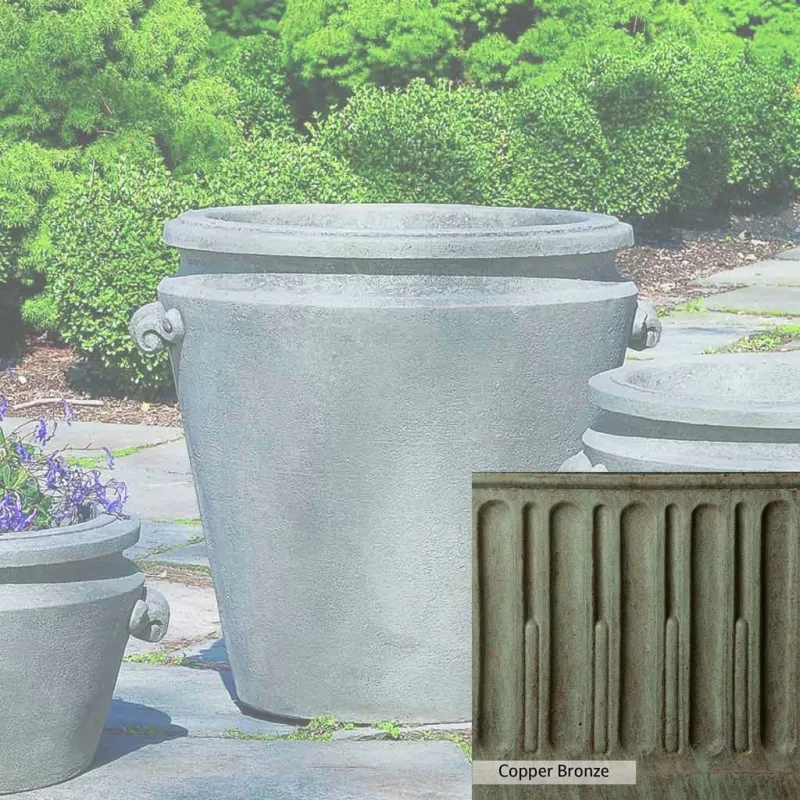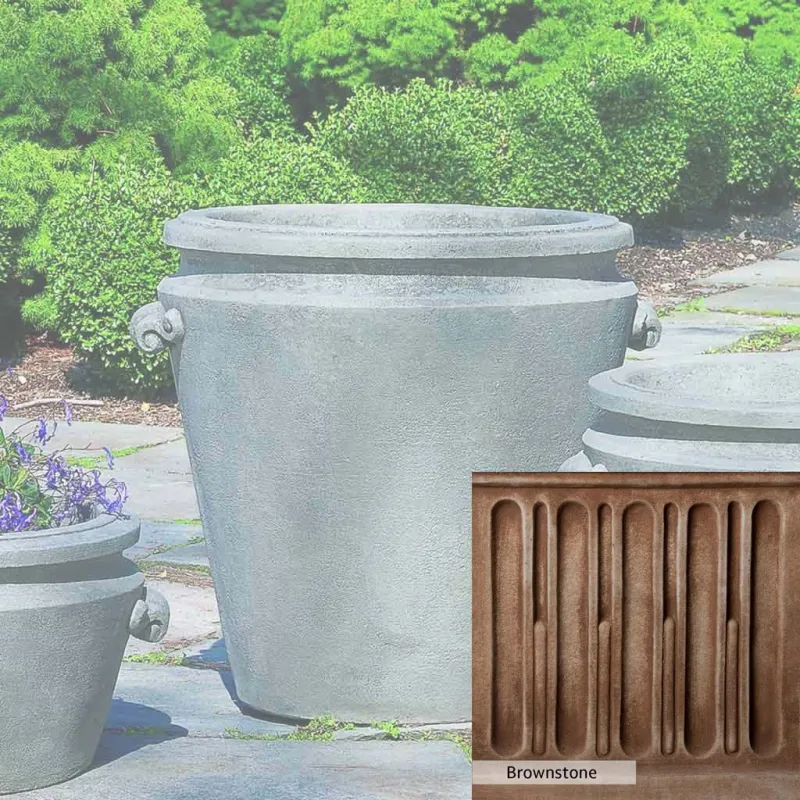 The Scroll Handle Large Planter by Campania International adds charm and character to any space. Planters can be placed outdoors on a patio or in the home office. Planters bring the garden to you, allowing for greenery to be placed in areas that might not grow a garden, like your front door stoop or a balcony garden. Using indoors, planters offer a home to indoor plants adding life and softness to your space. The Scroll Handle Large Planter by Campania International is just the right piece, made of cast stone and hand-stained to order. This planter offers a lifetime of enjoyment.
