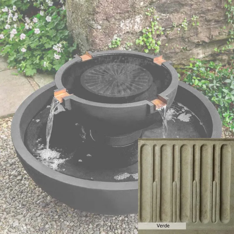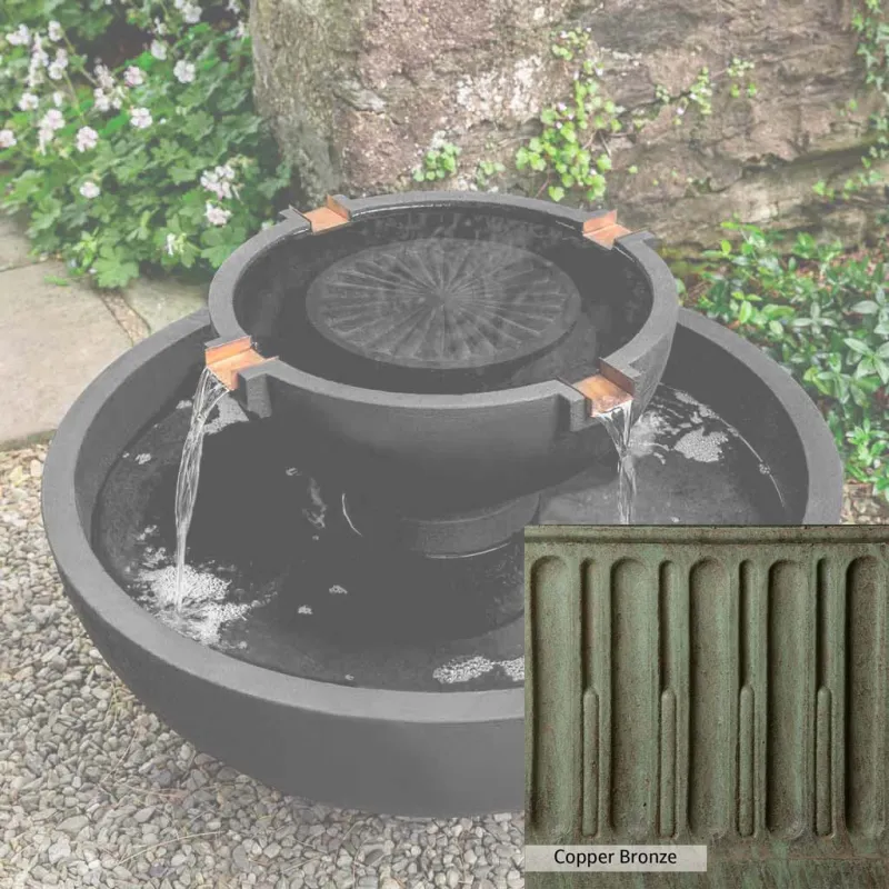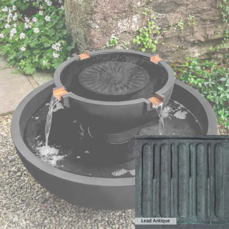 Skilled artisans in the USA handcraft the Small Del Rey Fountain. The Campania team applies a unique patina, making each piece one-of-a-kind. This fountain is shown in the Nero Nuovo color. Due to materials, manufacturing processes, and variations in photography conditions, natural differences can occur in size, weight, and color. The actual color may vary from the photo.