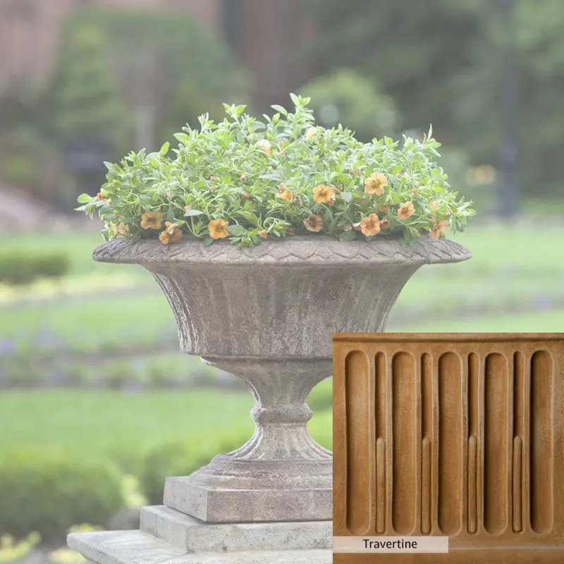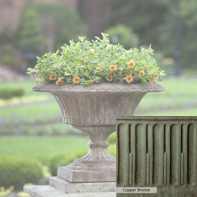 The Smithsonian Fluted Valentine Urn by Campania International adds charm and character to any space. Urns can be placed outdoors on either side of a walkway or driveway for a welcoming grand entrance. Placing an Urn in the garden and planting with flowers elevates your garden to a new level! Adding an Urn with a planting arrangement brings balance to your home design. The Smithsonian Fluted Valentine Urn by Campania International is just the right piece, made of cast stone and hand-stained to order this urn offers a lifetime of enjoyment.