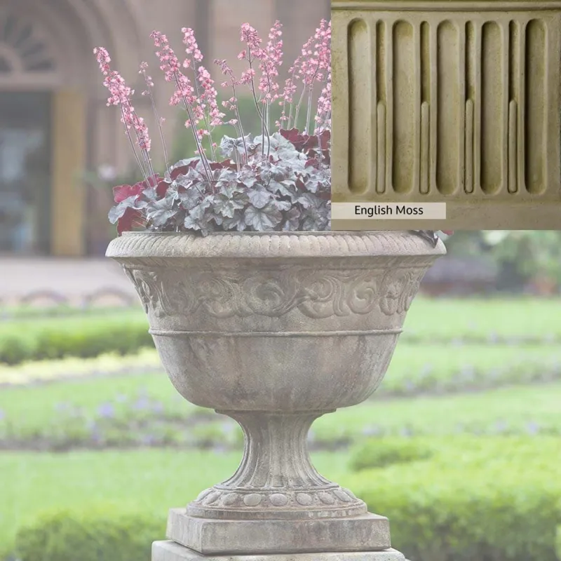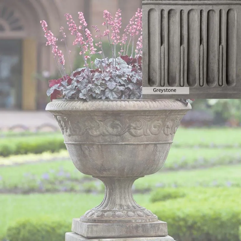 The Smithsonian Foliated Scroll Urn by Campania International adds charm and character to any space. Urns can be placed outdoors on either side of a walkway or driveway for a welcoming grand entrance. Placing an Urn in the garden and planting with flowers elevates your garden to a whole new level! Adding an Urn with a planting arrangement brings balance to your home design. The Smithsonian Foliated Scroll Urn by Campania International is just the right piece. Made of cast stone and hand-stained to order, this urn offers a lifetime of enjoyment.