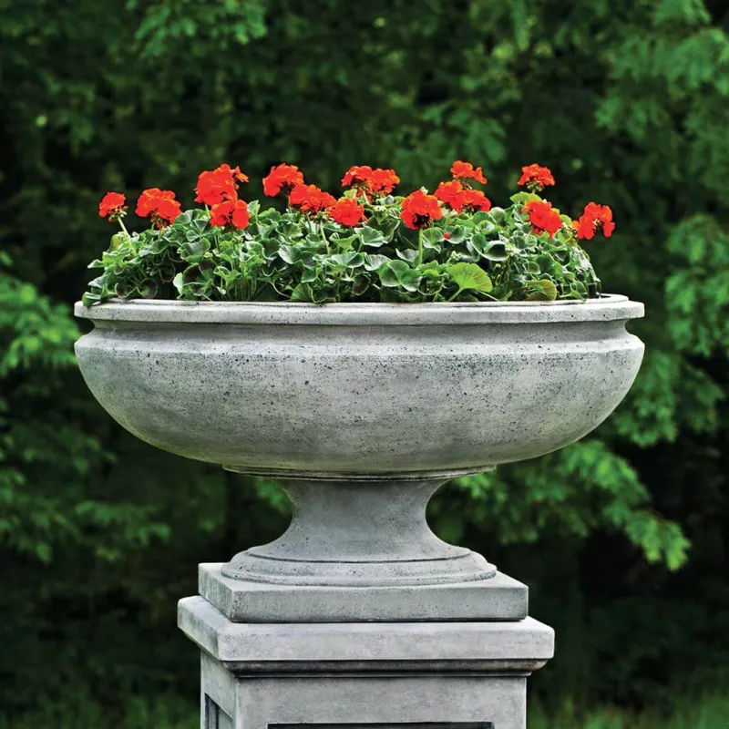 Order the Campania International St Louis Urn on St Louis Pedestal for the modern home or garden. Add the Campania International St Louis Urn on St Louis Pedestal with the perfect selection of succulents, horsetail, and your other favorite modern planting foliage.