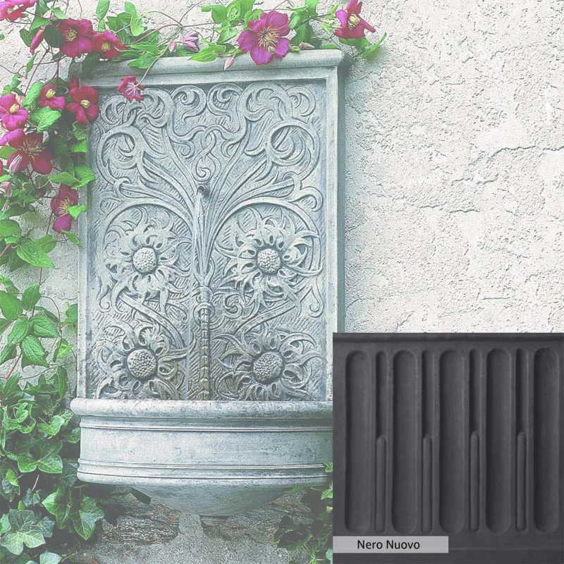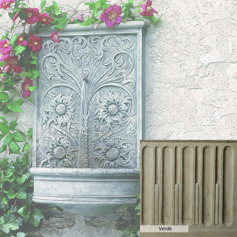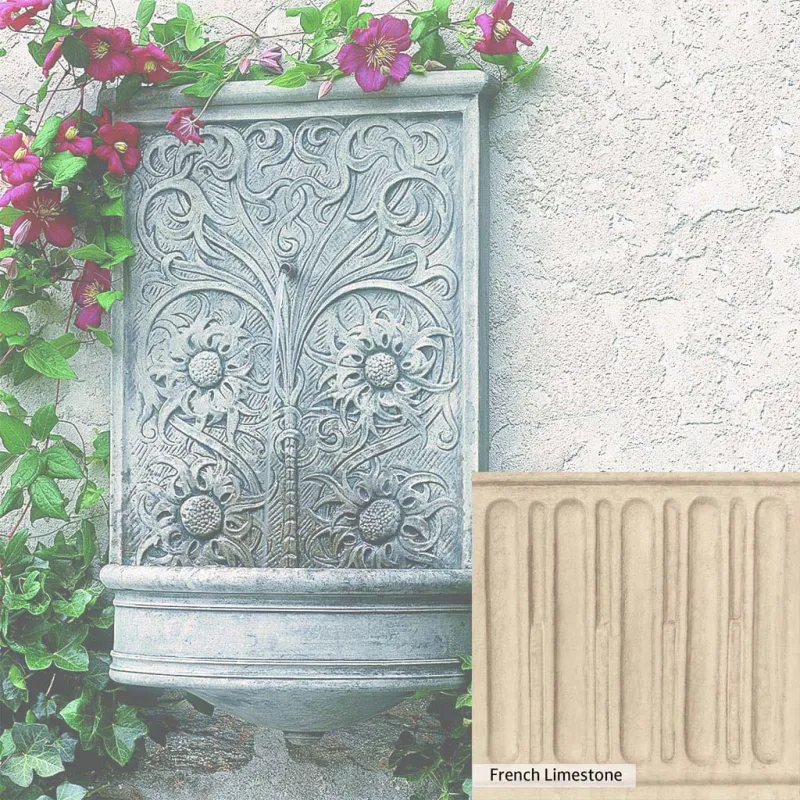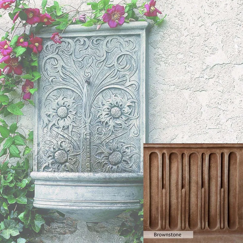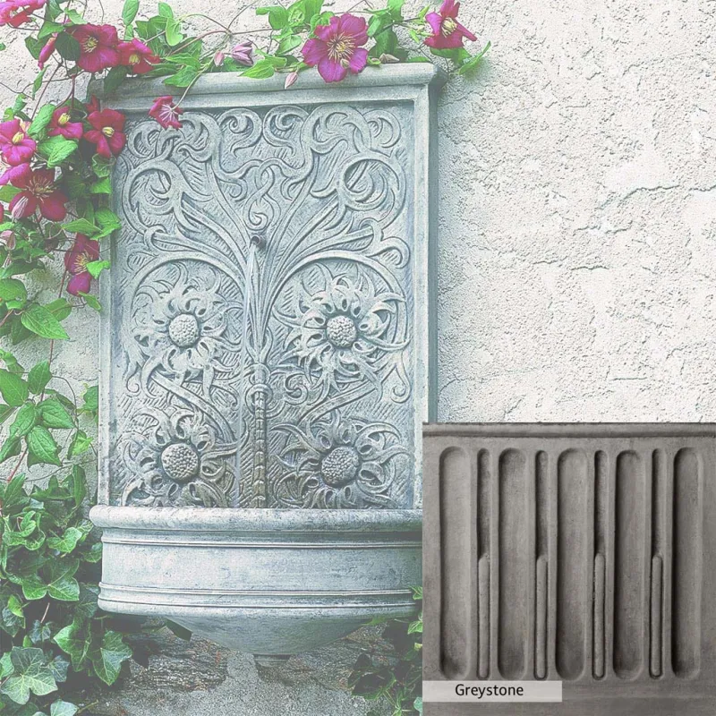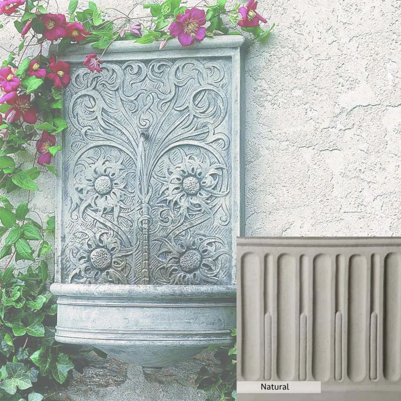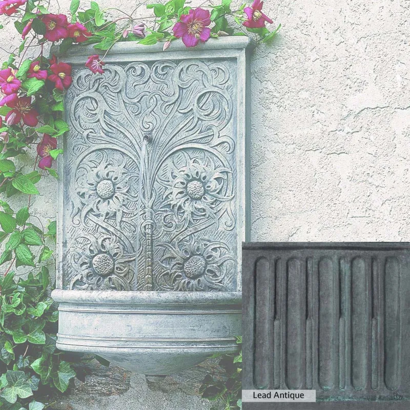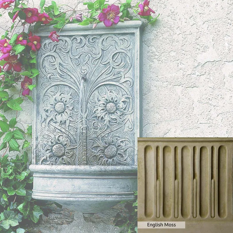 The Sussex Wall Fountain is handcrafted by skilled artisans in the USA. The Campania team applies a unique patina with experienced hands, making each piece special. This fountain is featured in the Alpine Stone color. Campania International’s exclusive cast stone blend is expertly molded to create each piece in the construction of this fountain. Due to the materials used and manufacturing processes, as well as variations in photography conditions, natural differences may occur in size, weight, and color. The actual color may vary from the photo.