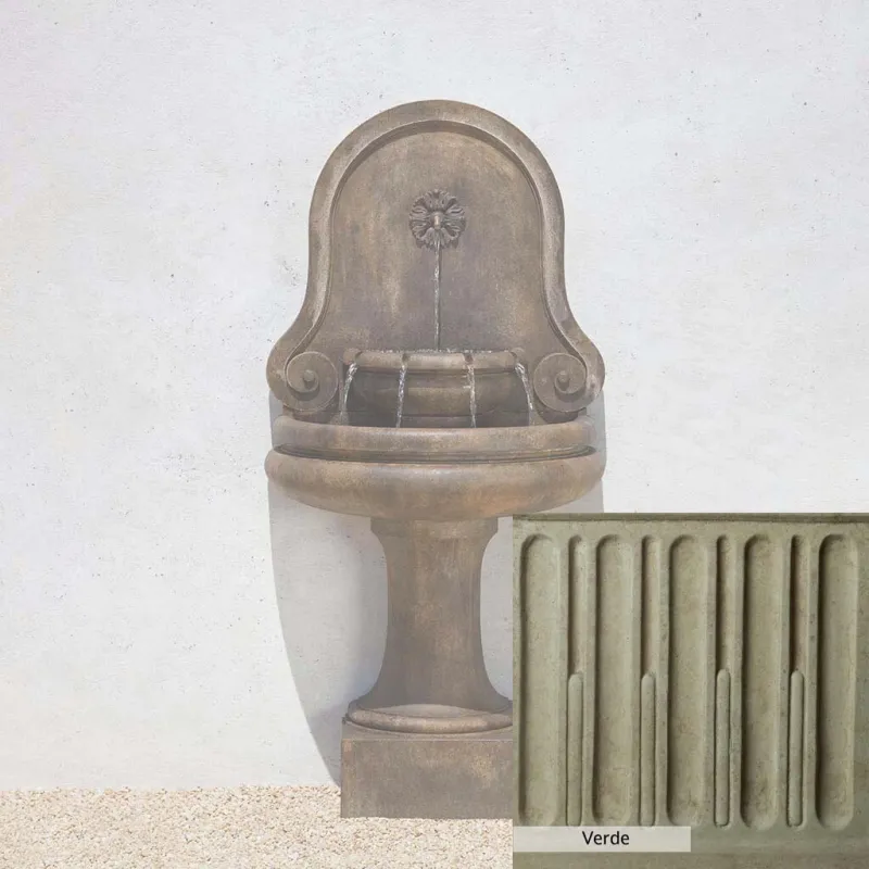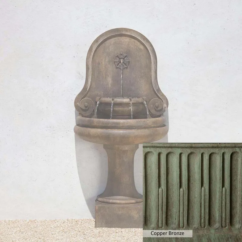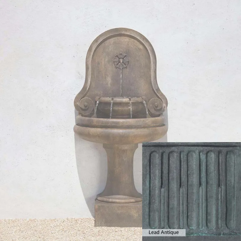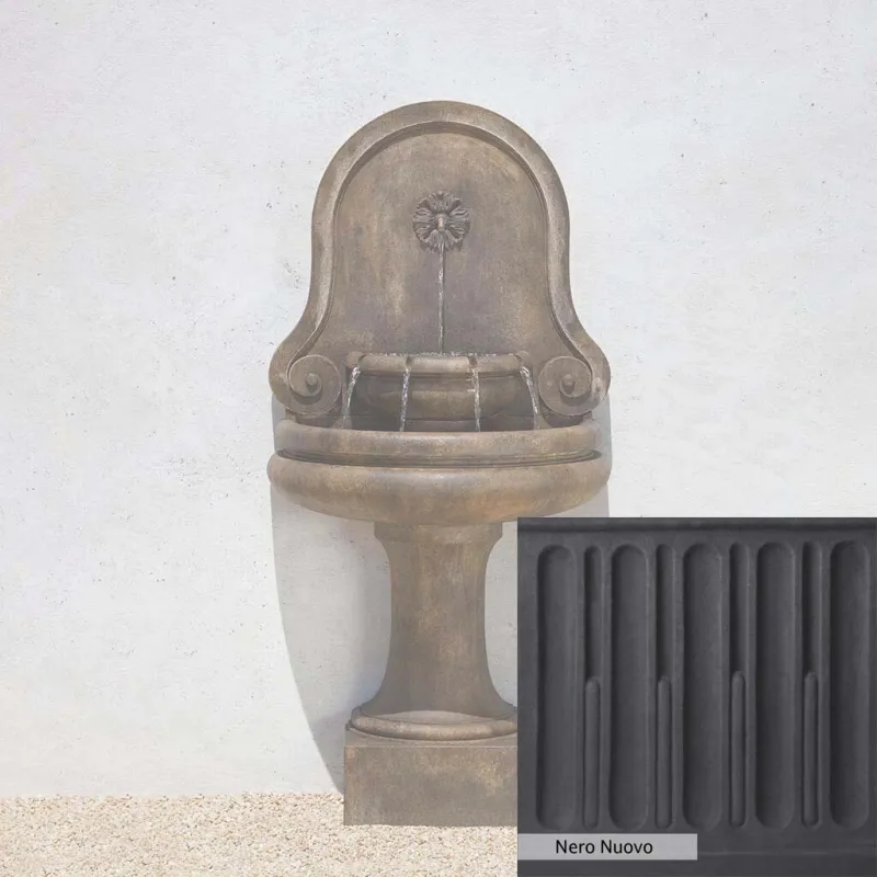 The Valencia Fountain is handcrafted by skilled artisans in the USA. The Campania team applies the unique patina with experienced hands, making each piece special. This fountain is featured in the Pietra Nuova color. Campania International’s exclusive cast stone blend is expertly molded to create each piece in the construction of this fountain. Due to the materials used and manufacturing processes, as well as variations in photography conditions, natural differences may occur in size, weight, and color. The actual color may vary from the photo.