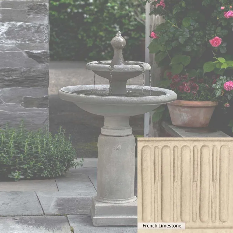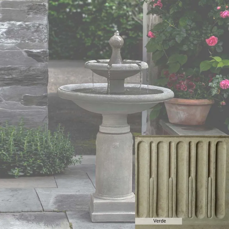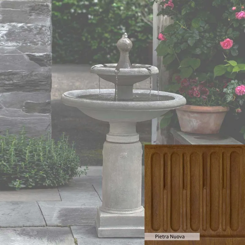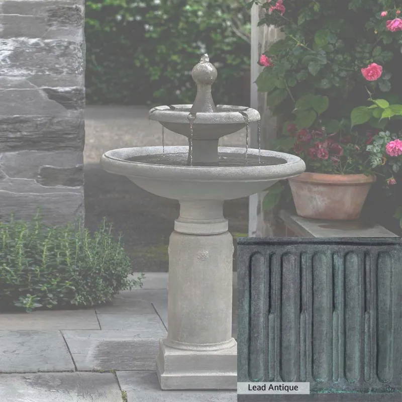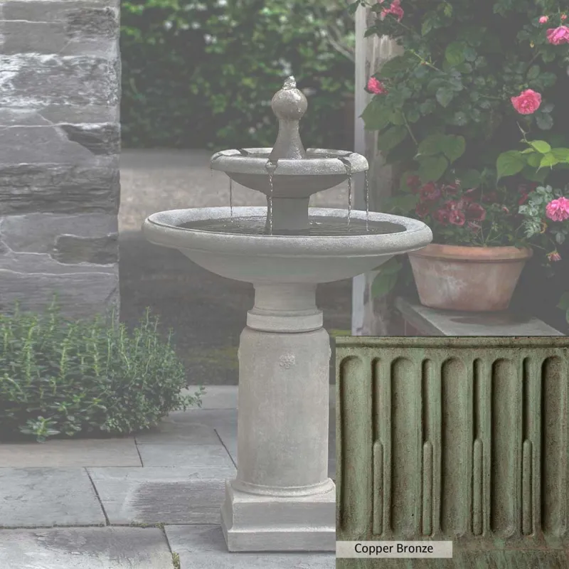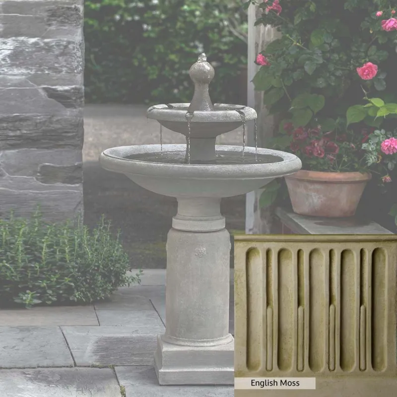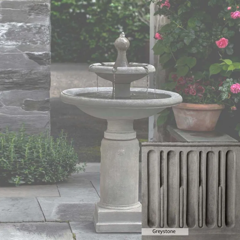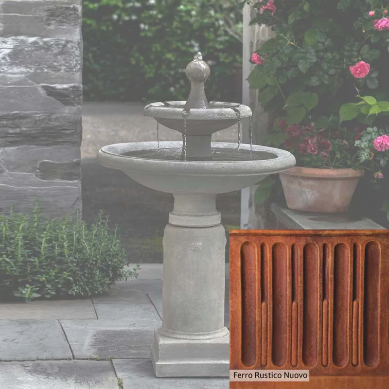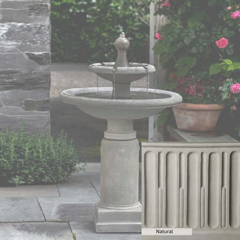 The Westover Fountain is handcrafted by skilled artisans in the USA. The Campania team applies a unique patina with experienced hands, making each piece special. This fountain is featured in the Brownstone color. Campania International’s exclusive cast stone blend is expertly molded to create each piece in the construction of this fountain. Due to the materials used and manufacturing processes, as well as variations in photography conditions, natural differences may occur in size, weight, and color. The actual color may vary from the photo.