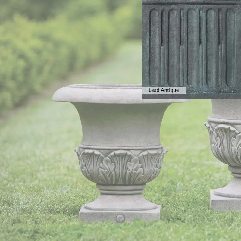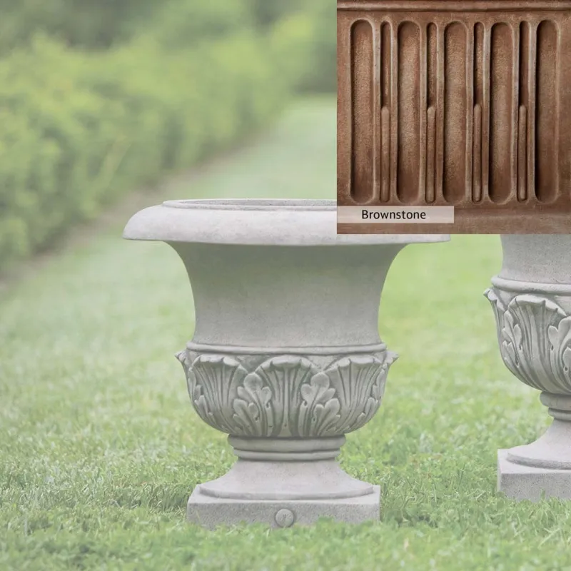 The Williamsburg Acanthus Small Planter by Campania International adds charm and character to any space. Planters can be placed outdoors on a patio or in the home office. Planters bring the garden to you, allowing for greenery to be placed in areas that might not grow a garden, like your front door stoop or a balcony garden. Using indoors, planters offer a home to indoor plants adding life and softness to your space. The Williamsburg Acanthus Small Planter by Campania International is just the right piece, made of cast stone and hand-stained to order. This planter offers a lifetime of enjoyment.