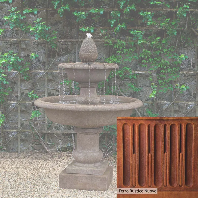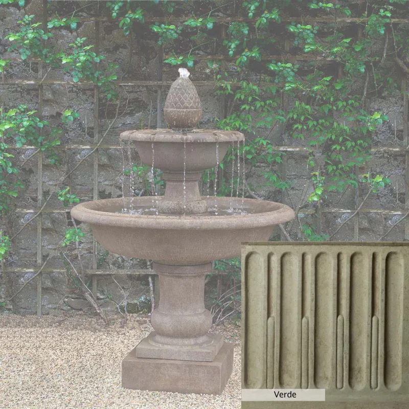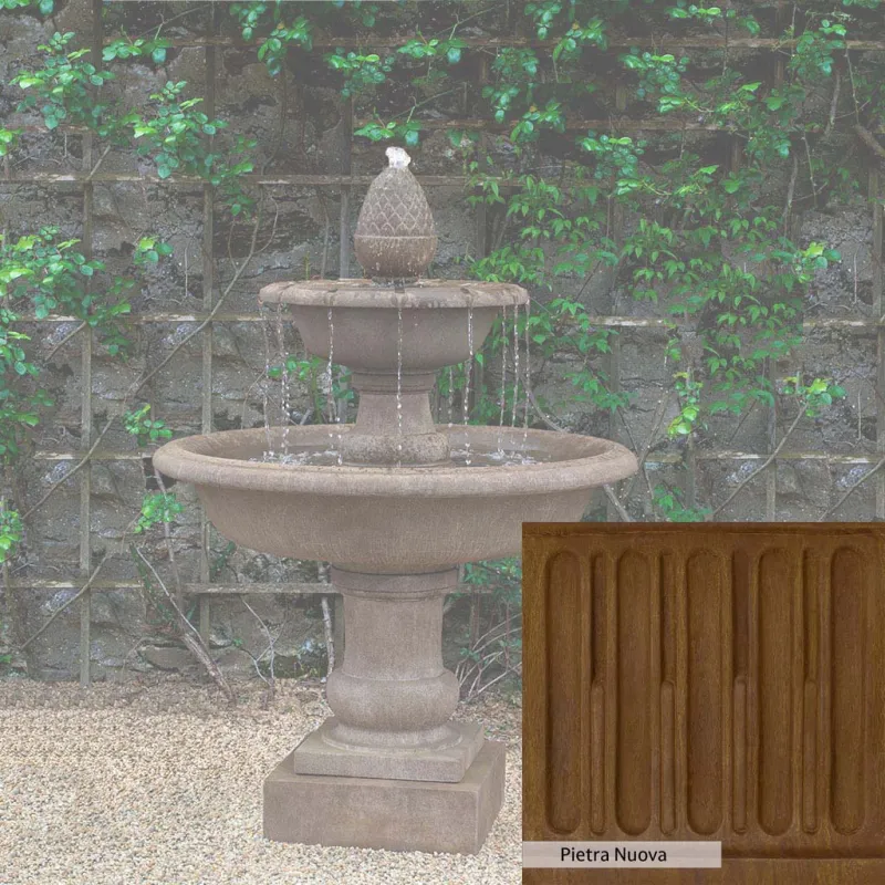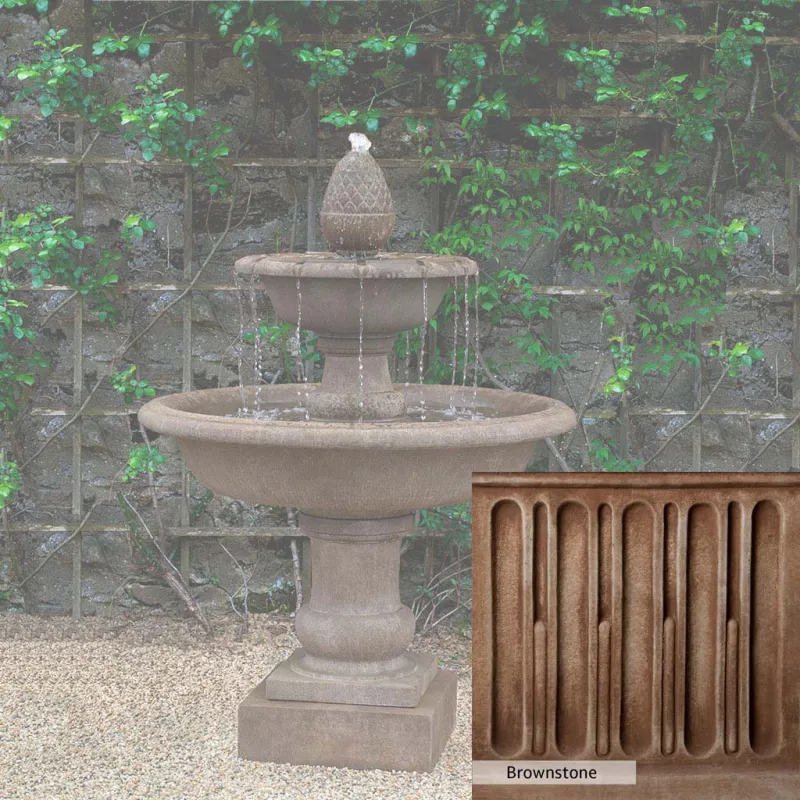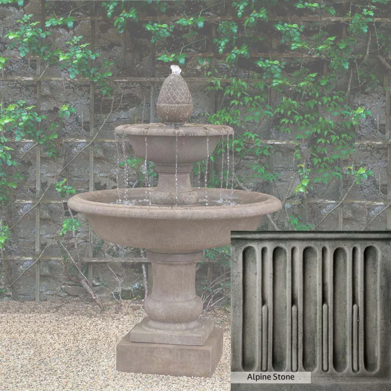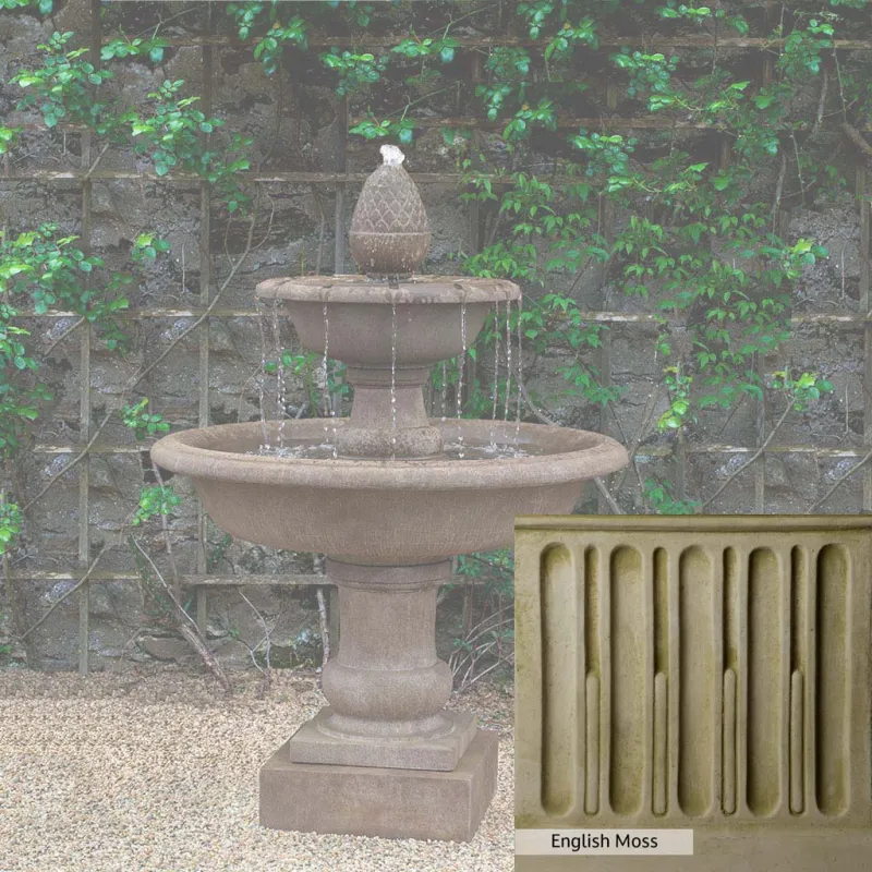 The Wiltshire Fountain is handcrafted by skilled artisans in the USA. The Campania team applies the unique patina with experienced hands, making each piece special. This fountain is featured in the Aged Limestone color. Campania International’s exclusive cast stone blend is expertly molded to create each piece in the construction of this fountain. Due to the materials used and manufacturing processes, as well as variations in photography conditions, natural differences may occur in size, weight, and color. The actual color may vary from the photo.