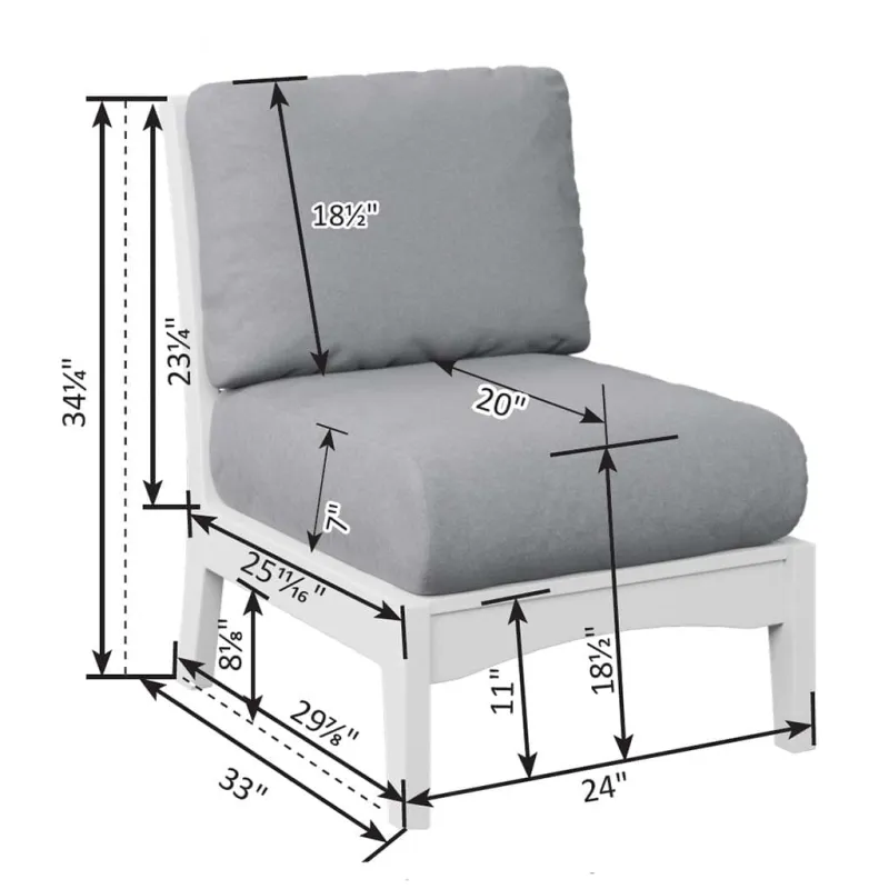 The Classic Terrace Armless Club Chair by Berlin Gardens offers comfort and style. It can be used on its own or as part of an outdoor sectional setup, making it a versatile piece of furniture. This outdoor chair is made in the USA using traditional American methods and sustainable techniques, ensuring durability. Additionally, it is backed by one of the best warranties in the outdoor furniture industry. So, whether you use it alone or as part of a set, the Classic Terrace Armless Club Chair provides a perfect spot to relax and unwind.