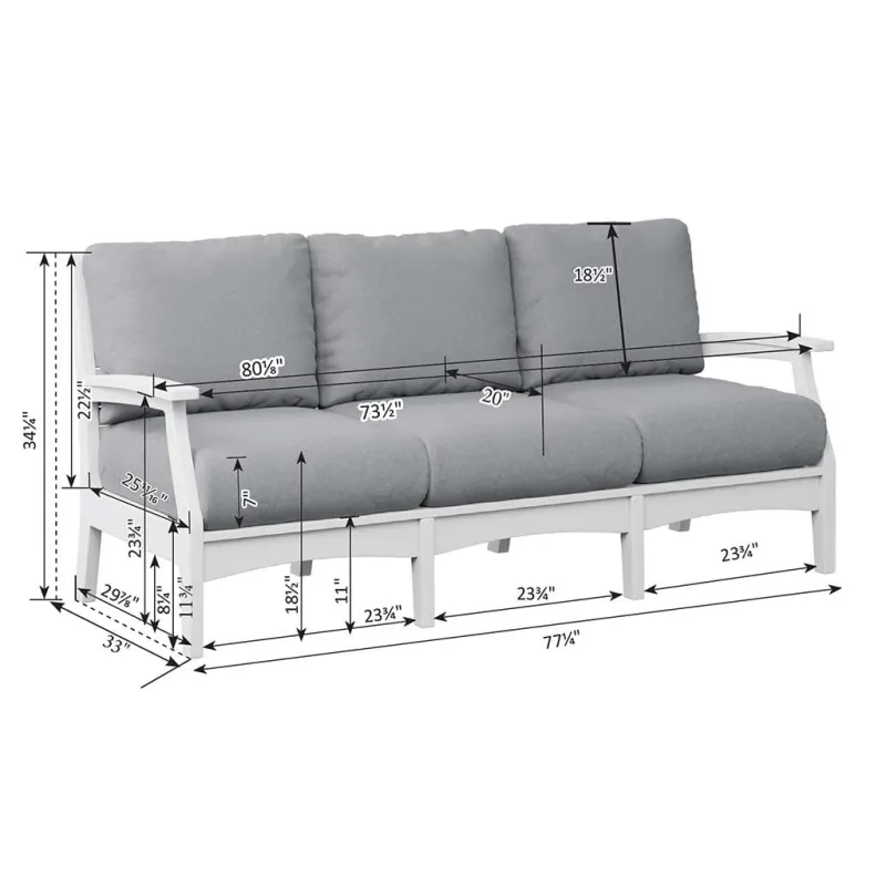 The Classic Terrace Sofa is made of HDPE furniture, a molded polyethylene material resistant to UV rays, moisture, and extreme temperatures. It is built to withstand harsh elements such as sun, rain, and snow without splintering, cracking, or fading over time. Plus, HDPE furniture requires minimal maintenance as it can be easily cleaned and does not need staining, sealing, or painting.