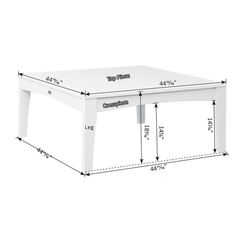 Find the perfect spot for your beverage, book, or tablet with the Classic Terrace Square Coffee Table by Berlin Gardens. This versatile and elegant design effortlessly complements any outdoor space. This table is made of HDPE furniture, a molded polyethylene material resistant to UV rays, moisture, and extreme temperatures. It is built to withstand harsh elements such as sun, rain, and snow without splintering, cracking, or fading over time. Additionally, HDPE furniture requires minimal maintenance as it can be easily cleaned and does not need staining, sealing, or painting.