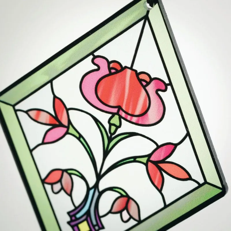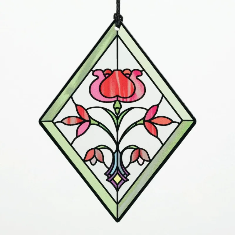 This delightful chime is adorned with a charming tulip ornament windcatcher featuring an original design that takes inspiration from the Art Deco style’s colorful hues and decorative patterns. Art Deco art forms often depicted themes of nature, such as flowers, birds, and other natural elements, which are reflected in this chime’s design. Tuned to an ancient pentatonic scale, this chime uplifts the spirit and creates a sense of calm, celebrating the beauty of art and nature in our surroundings.