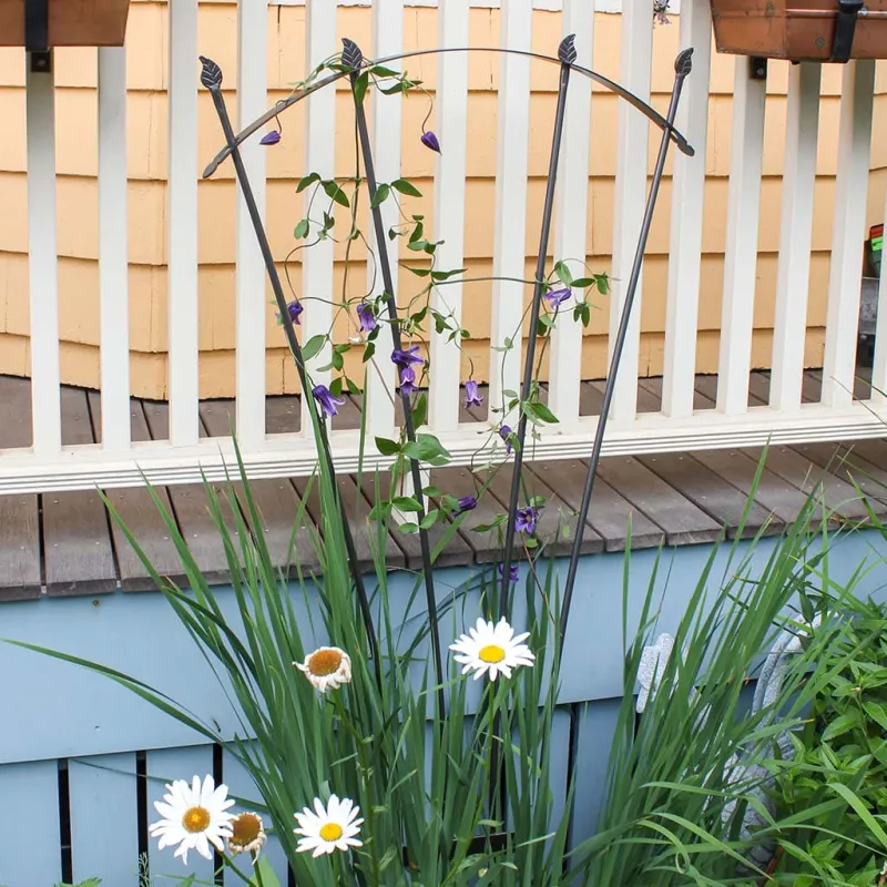 The Fan Trellis by Achla Designs provides classic, elegant support for climbers like roses, clematis, and mandevilla and is a great choice for the avid gardener or plant enthusiast. Its slim base and spiked feet make it easy to install directly into garden beds or containers, and its four ribs and arching cross-piece make it more durable and longer-lasting than traditional trellises or arbors.