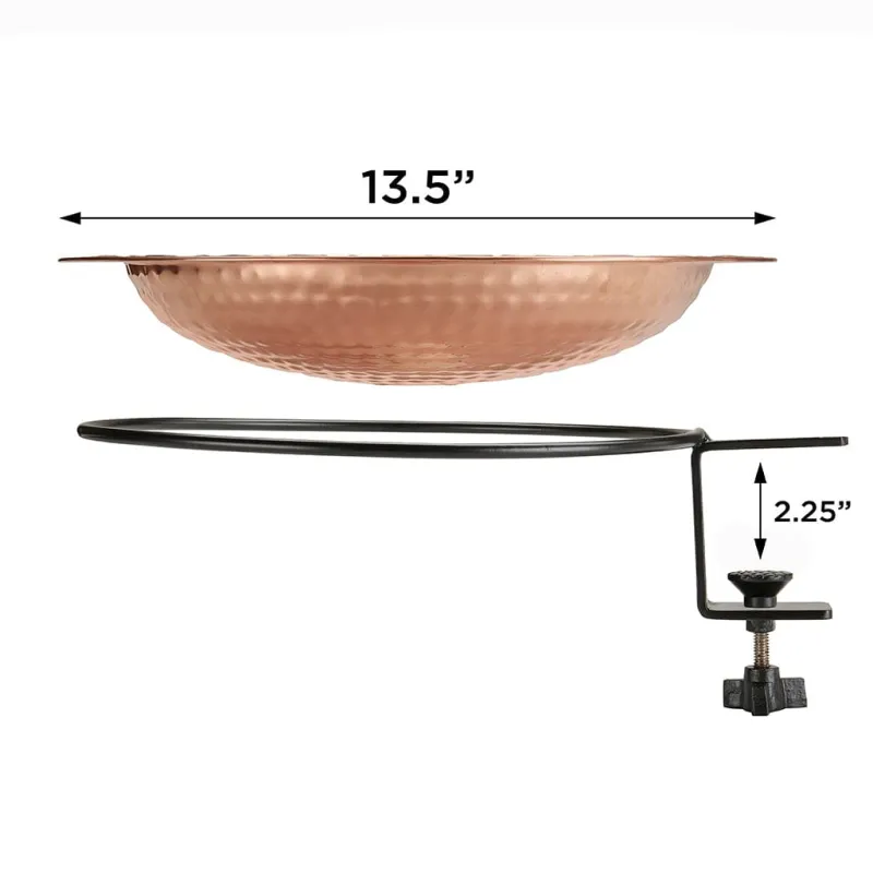 13-inch Pure Copper Bird Bath with Deck Bracket by Good Directions
